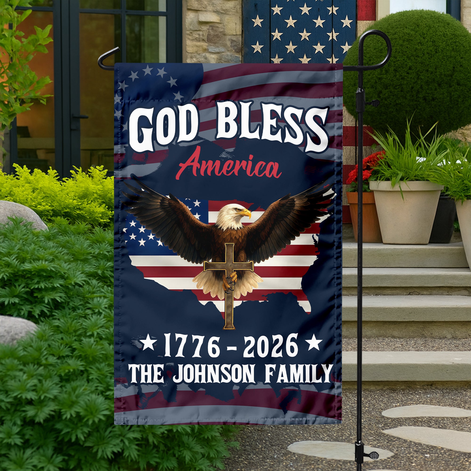 Custom Family Name Patriotic 250th Anniversary God Bless America Eagle 1776–2026 Garden Flag HO82 900870