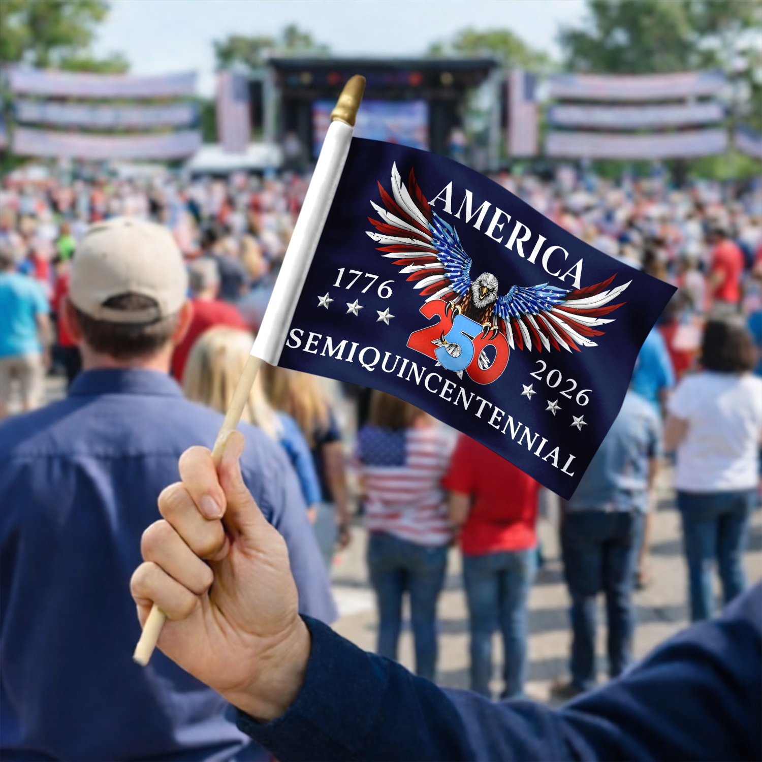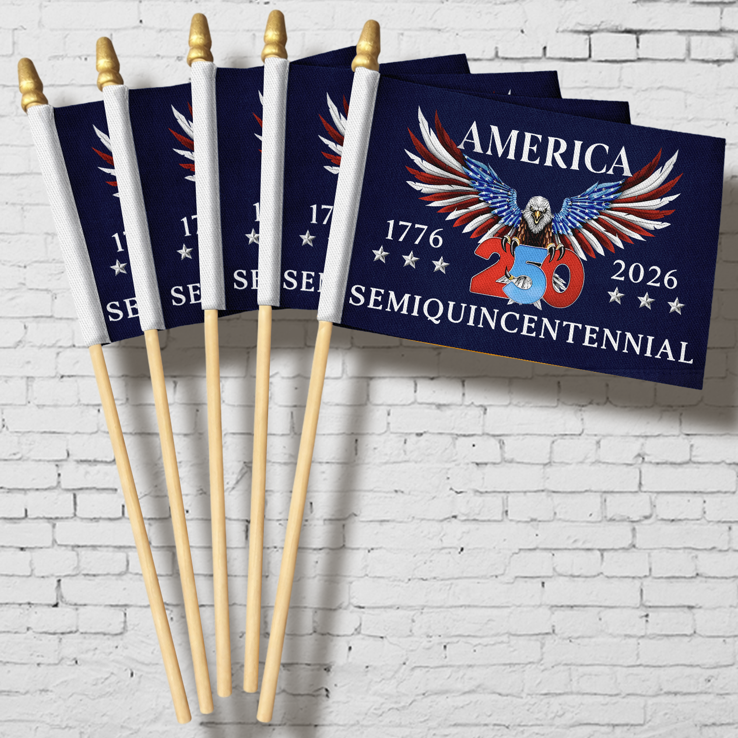 Celebrate American pride with this striking patriotic eagle handheld flag, a timeless symbol of 250 years of freedom and independence. Perfect for Independence Day, parades, civic events, or displaying your patriotic spirit year-round. The vibrant design features a majestic eagle set against classic American colors, making it an ideal gift for history enthusiasts, veterans, and proud citizens. Lightweight and easy to wave, this flag brings patriotic energy to any gathering. Whether you're commemorating a milestone or showing your love for the nation, this handheld flag is a meaningful way to honor American heritage and values.