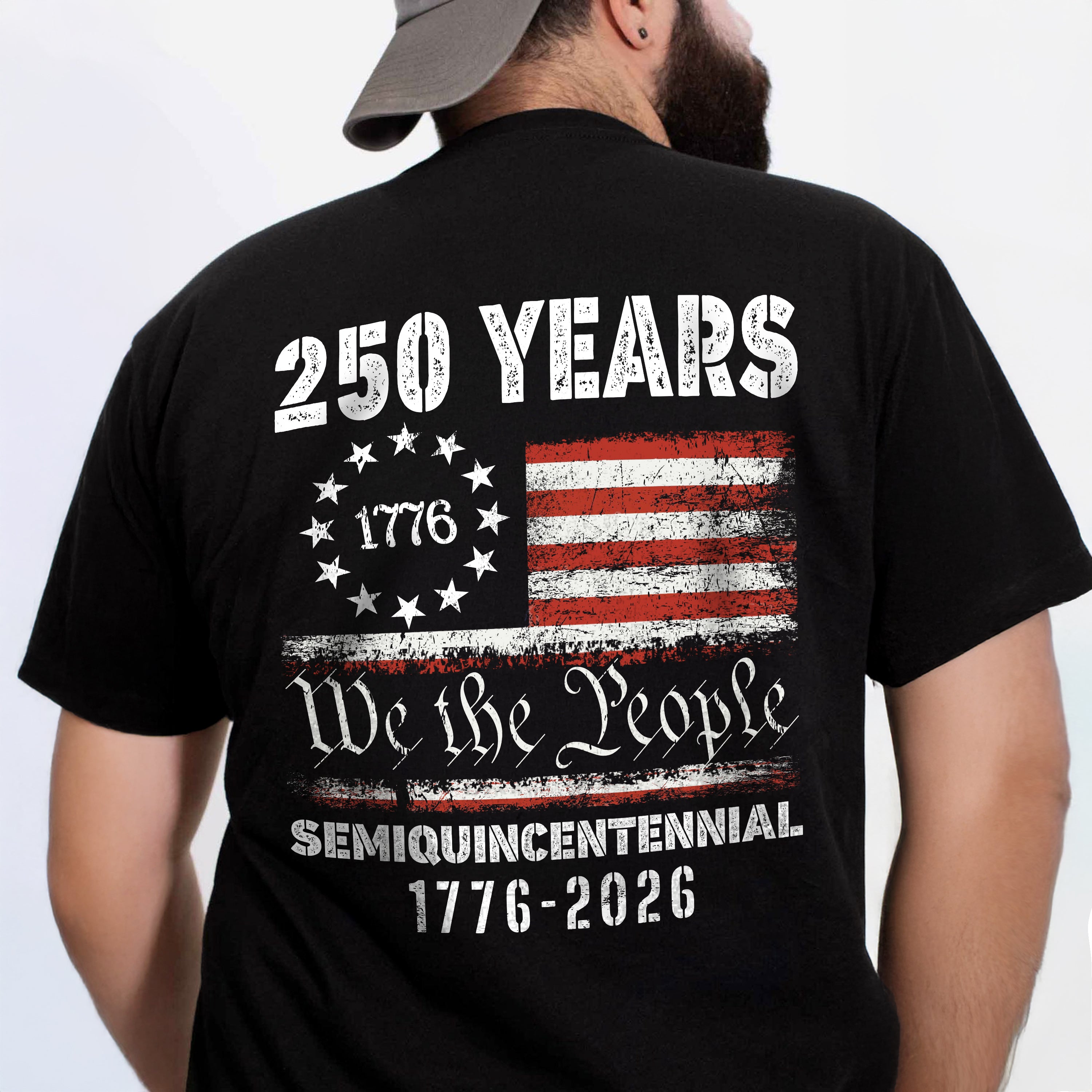 Show your pride in the United States' 250th anniversary with this Celebrate Our America Semiquincentennial shirt. Featuring a striking dark design on the back, this shirt honors a historic milestone while offering comfortable, everyday wear. Perfect for patriotic celebrations or casual outings, it lets you commemorate the nation's legacy with style and pride.