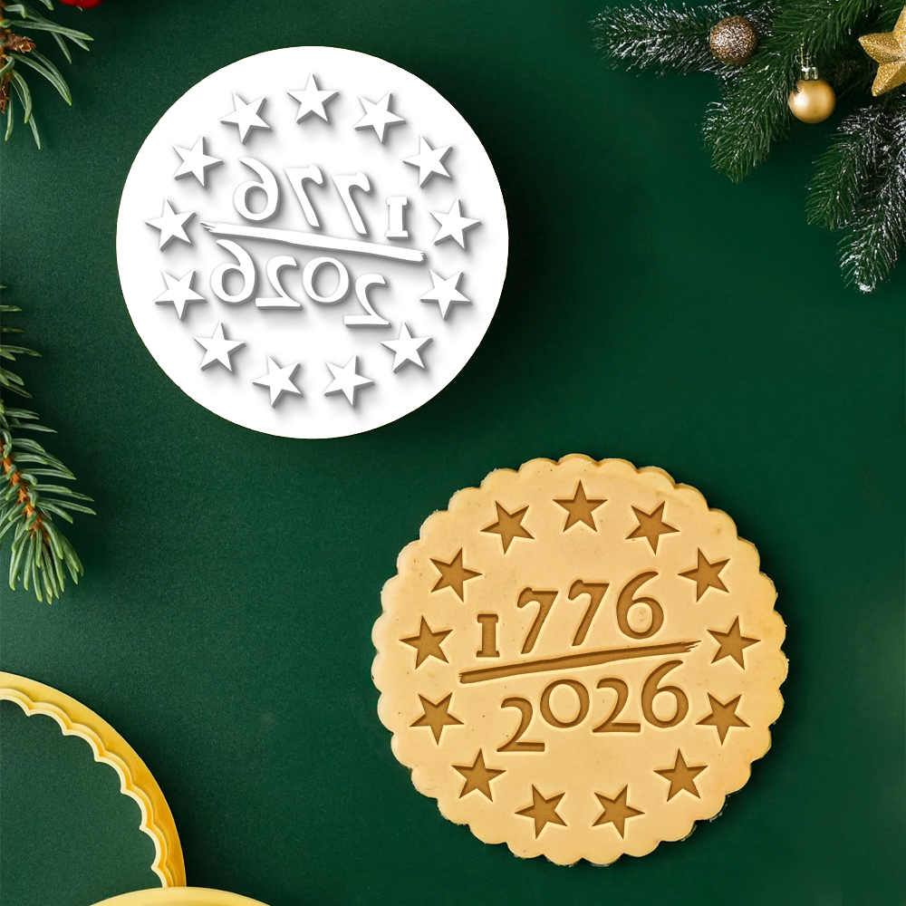 Celebrate America's milestone with this distinctive 1776-2026 USA 250th Anniversary cookie stamp, perfect for commemorating the nation's quarter-century of independence. Featuring intricate detailing that captures the spirit of the Fourth of July, this custom stamp transforms ordinary cookies into patriotic masterpieces. Ideal for anniversary parties, holiday gatherings, and Independence Day celebrations, it adds a memorable touch to your festive treats. Whether you're hosting a special event or creating keepsakes for guests, this unique design brings historical significance and creative flair to every bite. Make your celebration unforgettable with cookies that tell America's story.