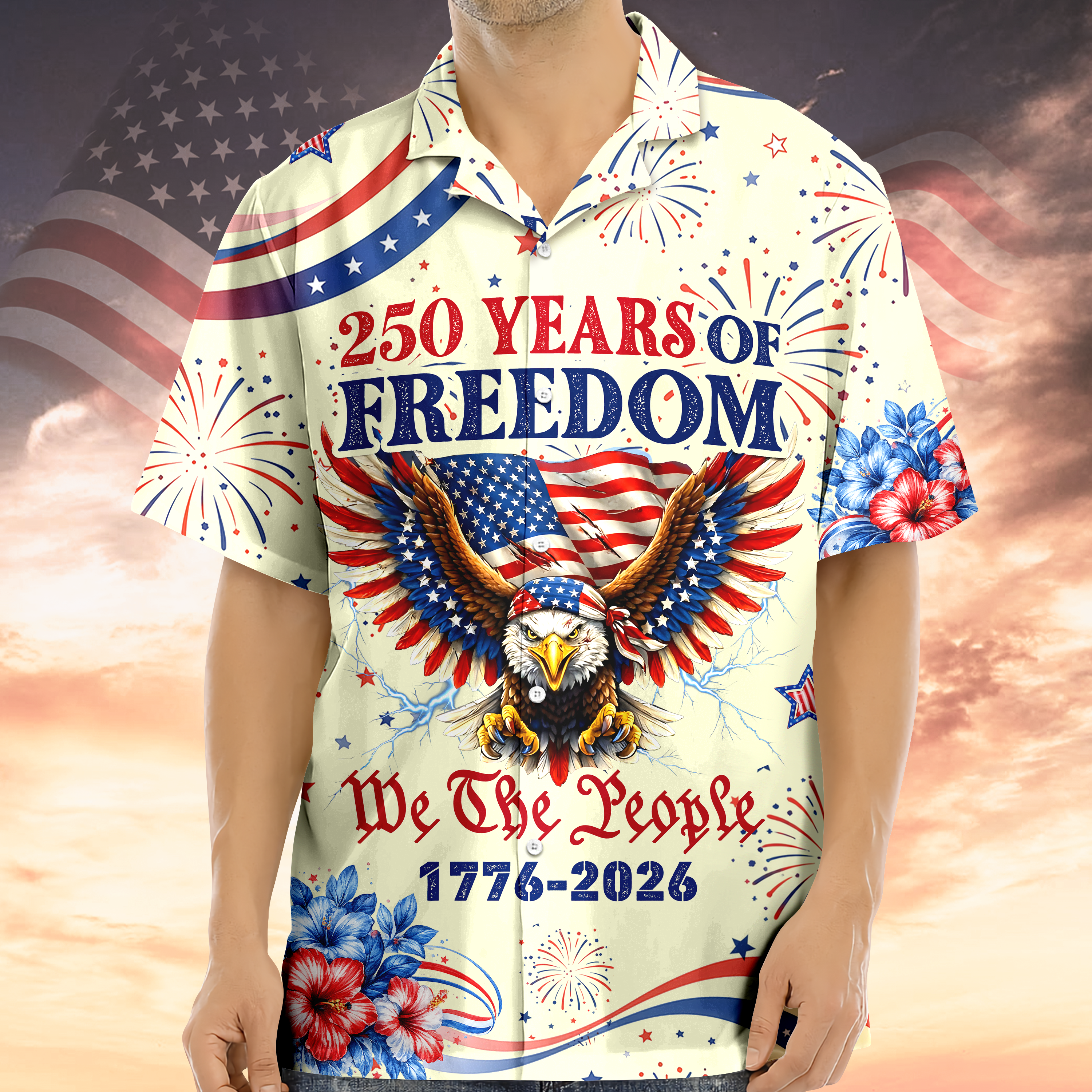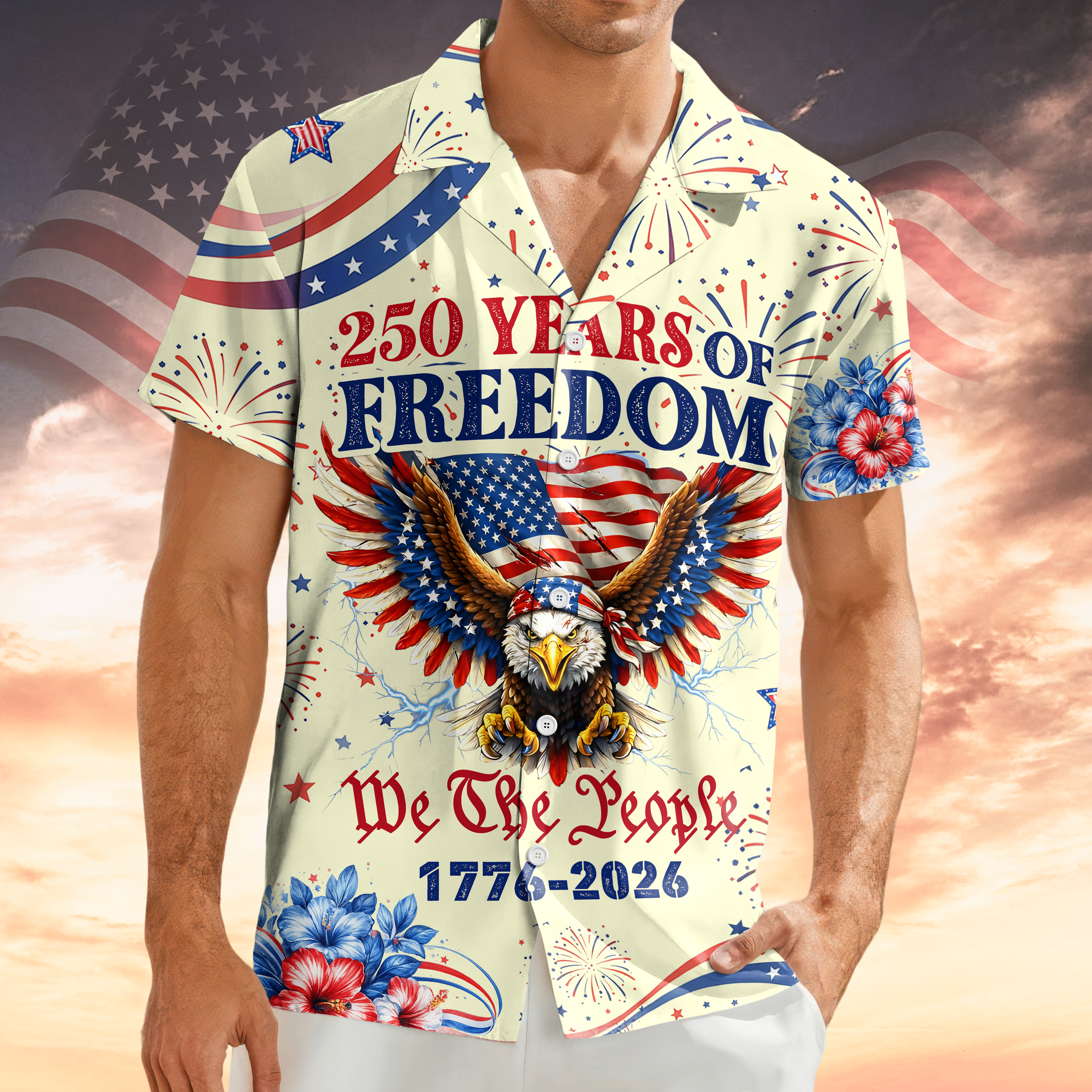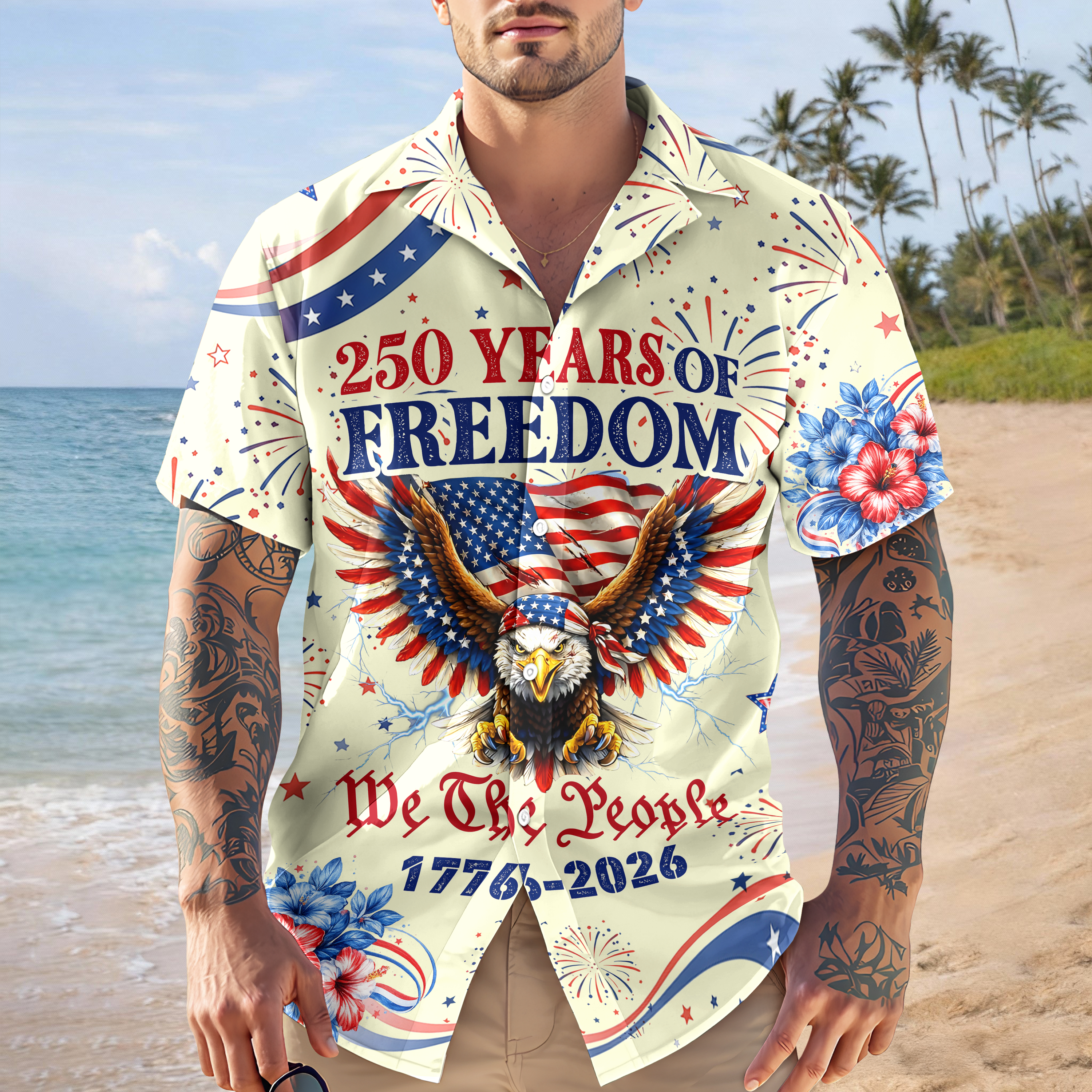 Celebrate America's quarter-millennium legacy with this striking Hawaii shirt that honors 250 years of freedom and independence. Featuring bold patriotic design elements commemorating 1776-2026, this vibrant shirt blends classic Americana with tropical style. Perfect for Independence Day gatherings, patriotic events, or anyone who takes pride in American history. The comfortable, breathable fabric makes it ideal for warm weather celebrations. Give the gift of patriotic pride to history enthusiasts and freedom-loving friends who appreciate meaningful, wearable tributes to the nation's enduring spirit.