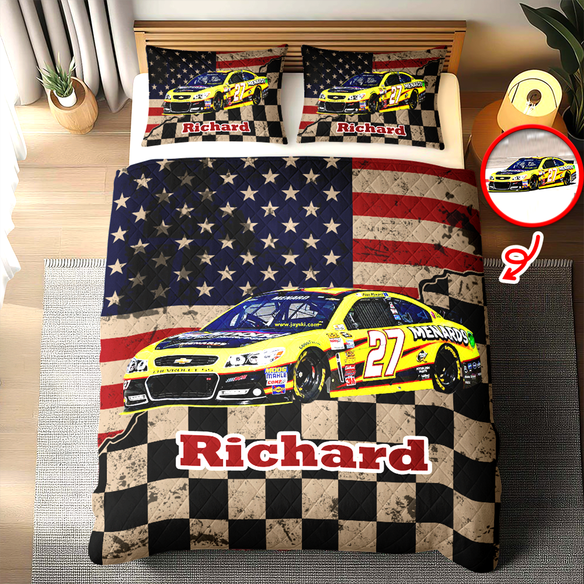 Transform your bedroom into a high-octane racing sanctuary with this personalized bedding set, designed exclusively for automotive enthusiasts. Featuring your custom racing photo alongside iconic checkered flag imagery, this set combines passion for motorsports with everyday comfort. Premium quality fabric ensures durability through countless washes while maintaining vibrant colors and sharp details. Perfect as a standout gift for the car lover in your life, it brings track-side excitement to bedtime. Create a space that celebrates their love of speed and competition—a unique statement piece that no generic bedding can match.