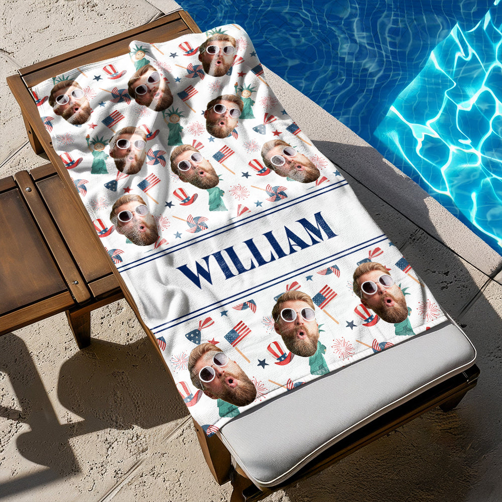 Transform your beach days into an all-American experience with our Custom Photo Patriotic America Flag Beach Towel! Show off your funny side and soak up the summer vibes with this Independence Day essential. Perfect for the patriot in all of us!
