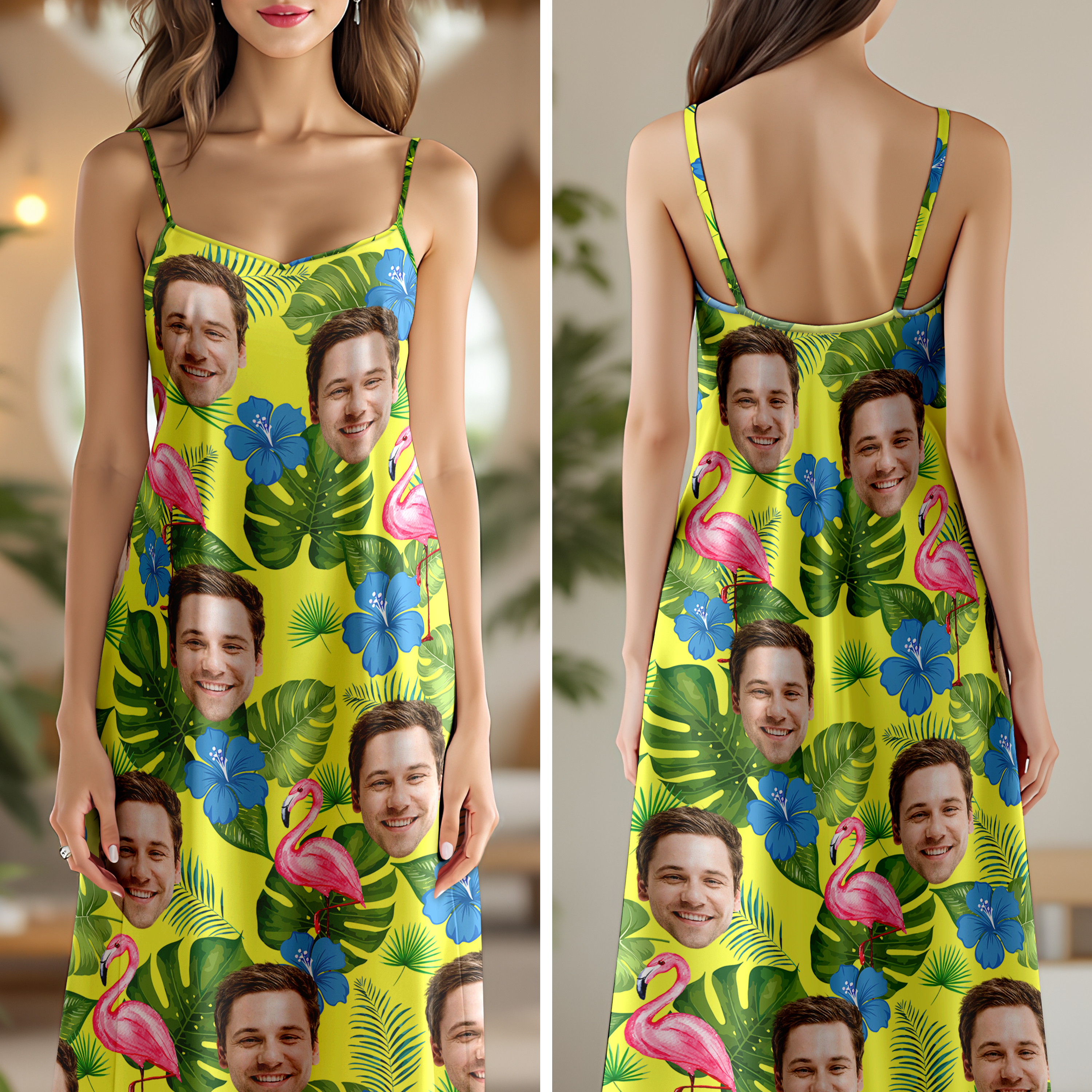 Add a personal touch to your summer wardrobe with our Custom Photo Tropical Hawaii Style Cami Maxi Dress! Made for warm summer days, this dress is the perfect gift for anyone who loves unique and stylish fashion. Featuring a flattering V-neck, it's the perfect addition to your holiday outfit!