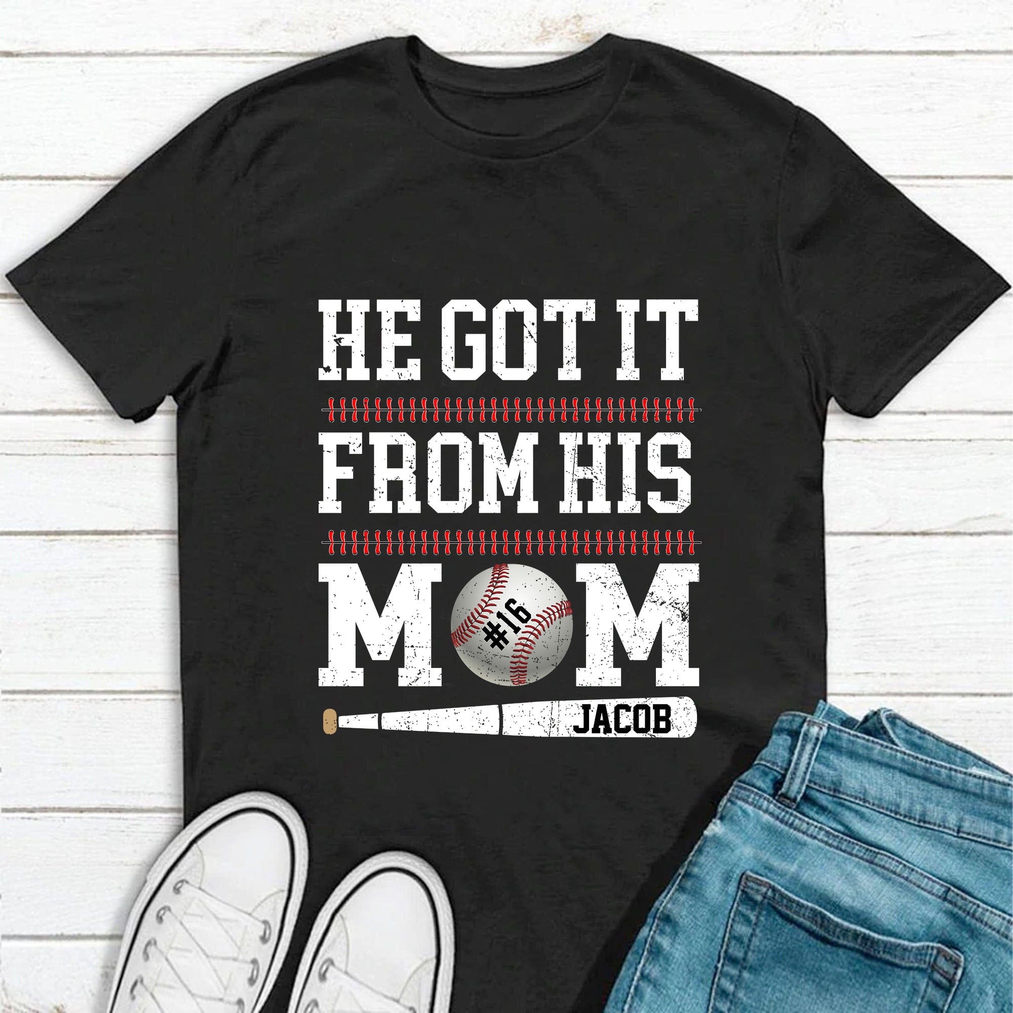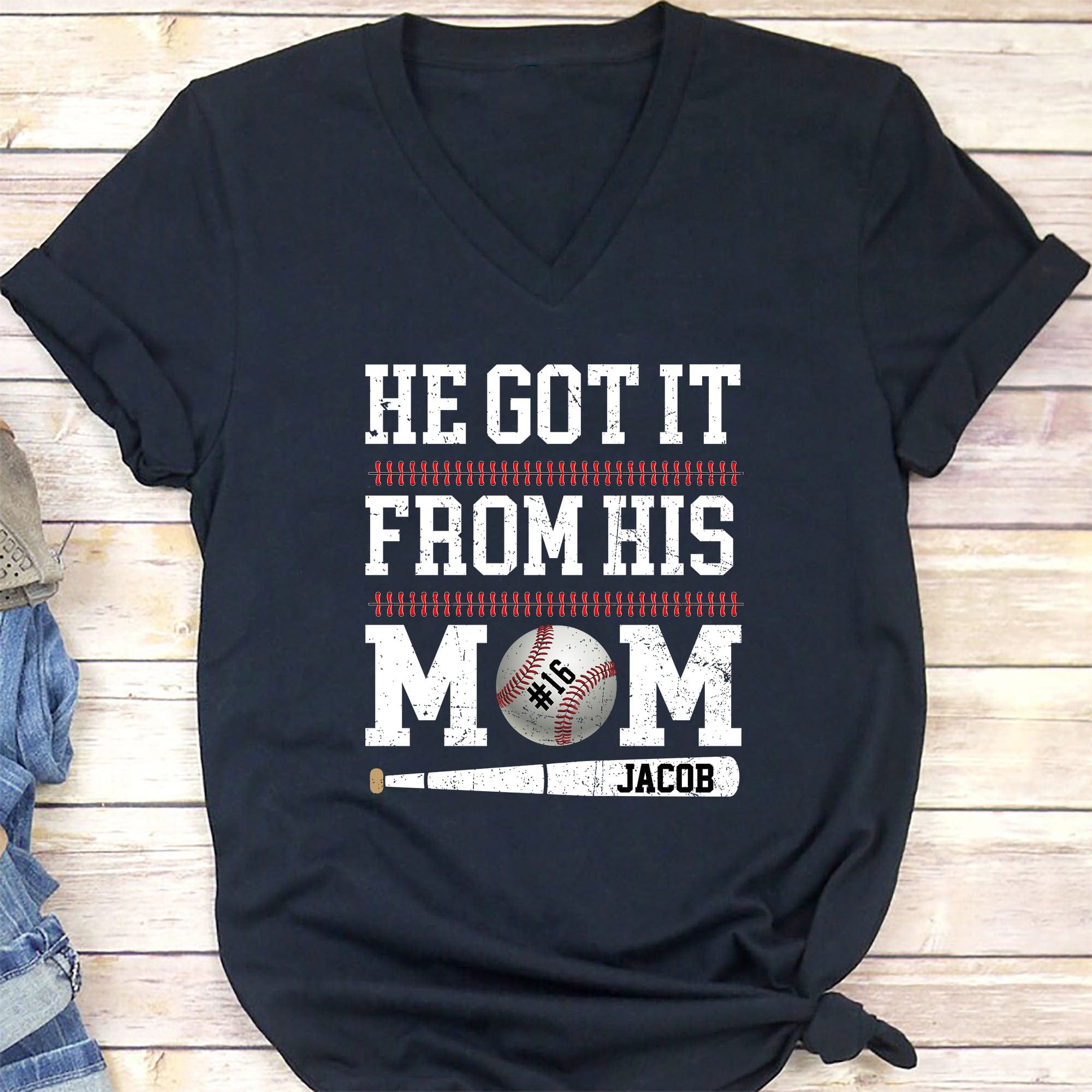 He Got It From His Mom Baseball Shirt Personalized Custom Baseball Shirt H516