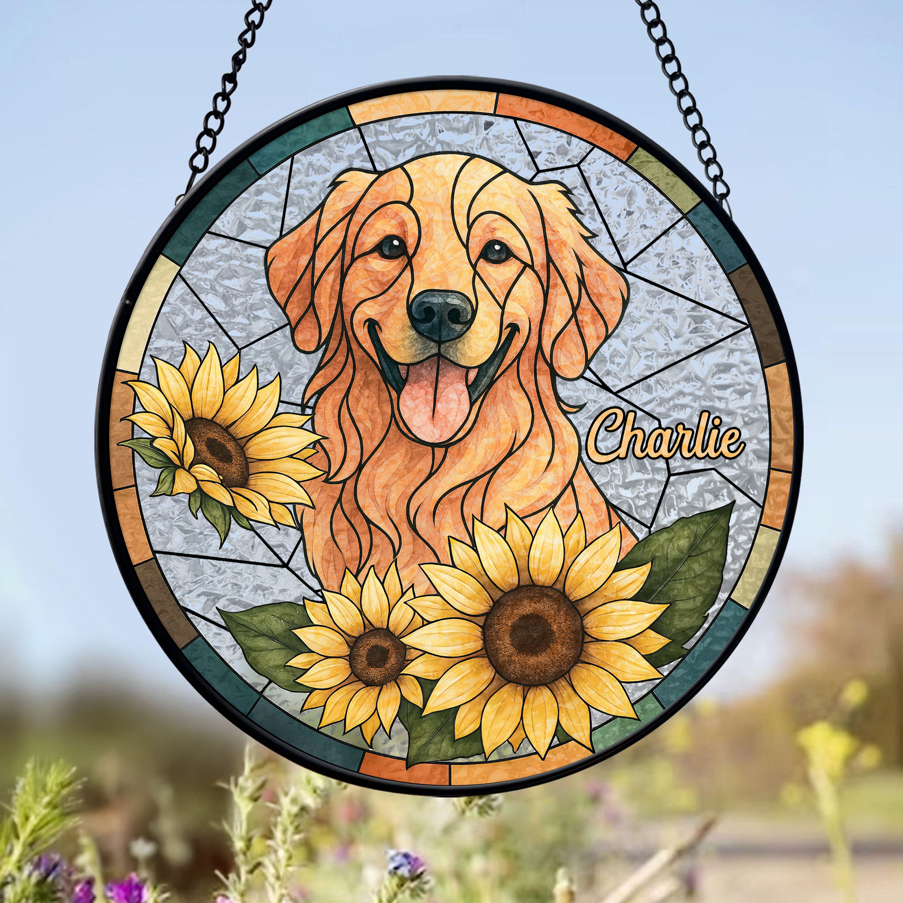 Custom Dog Photo With Sunflower Memorial Stained Glass Suncatcher, Pet Loss Gift HO82 894326