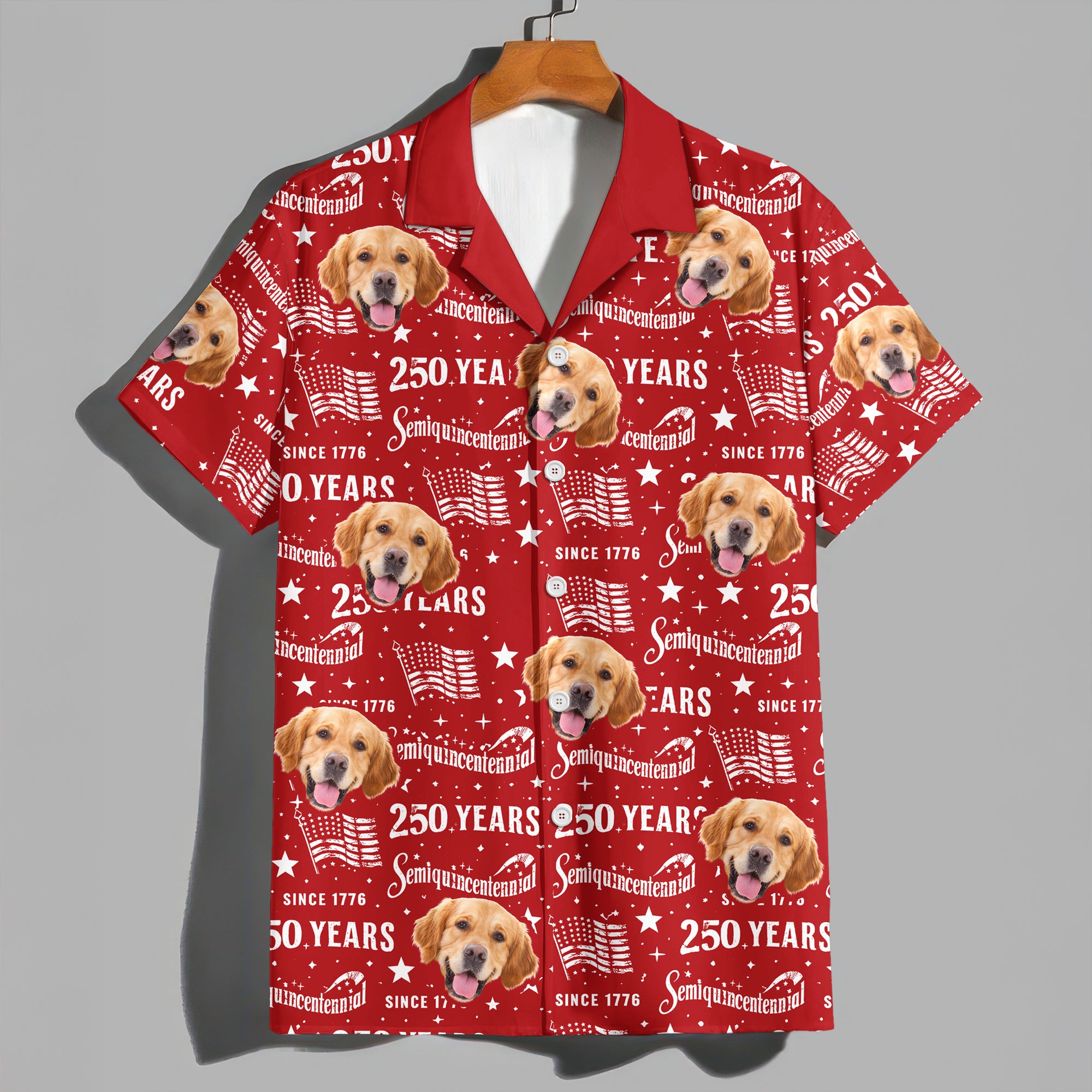 Celebrate in tropical style with the Custom Dog Cat Photo America 250 Semiquincentennial Hawaii Shirt. Personalized with your pet’s photo, this fun and vibrant design brings together island vibes and patriotic spirit. Perfect for summer parties, vacations, and America’s 250th celebration events. A unique and playful shirt for pet lovers who want to show off their furry friend in a truly unforgettable way