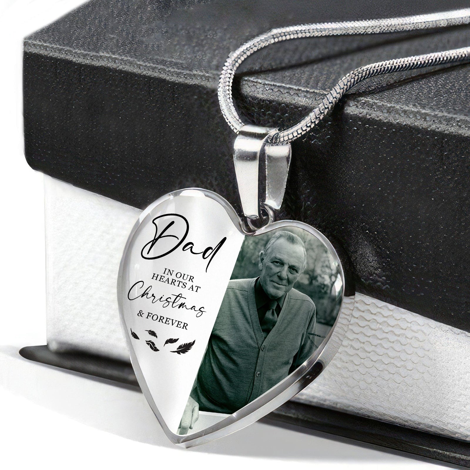 Honor your loved one with this personalized memorial necklace, a timeless tribute that keeps cherished memories close to your heart. Featuring a customized photo design, this elegant piece serves as a meaningful keepsake for Christmas and beyond. Perfect for those seeking a heartfelt way to celebrate a life well-lived, this necklace combines sentimental value with sophisticated craftsmanship. Wear it as a daily reminder of enduring love and connection, transforming grief into a beautiful expression of remembrance that lasts forever.
