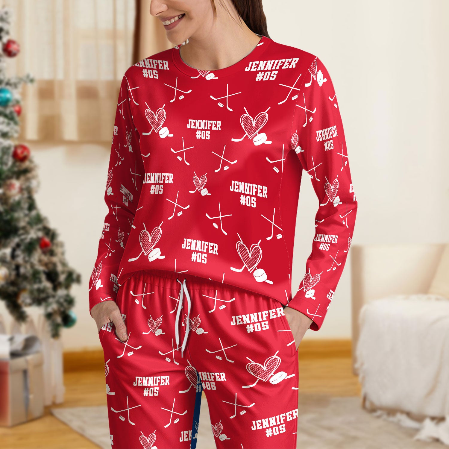 Celebrate the holiday season in cozy style with our Personalized Christmas Hockey Sleepwear, the perfect gift for hockey lovers. Tailored to showcase your passion for the game, this sleepwear offers warmth and comfort during chilly winter nights. Whether relaxing by the fire or gearing up for Christmas morning, its festive design and personalized touch make it an unforgettable present that combines holiday cheer with your love for hockey. Give the gift that scores big in comfort and spirit this Christmas.