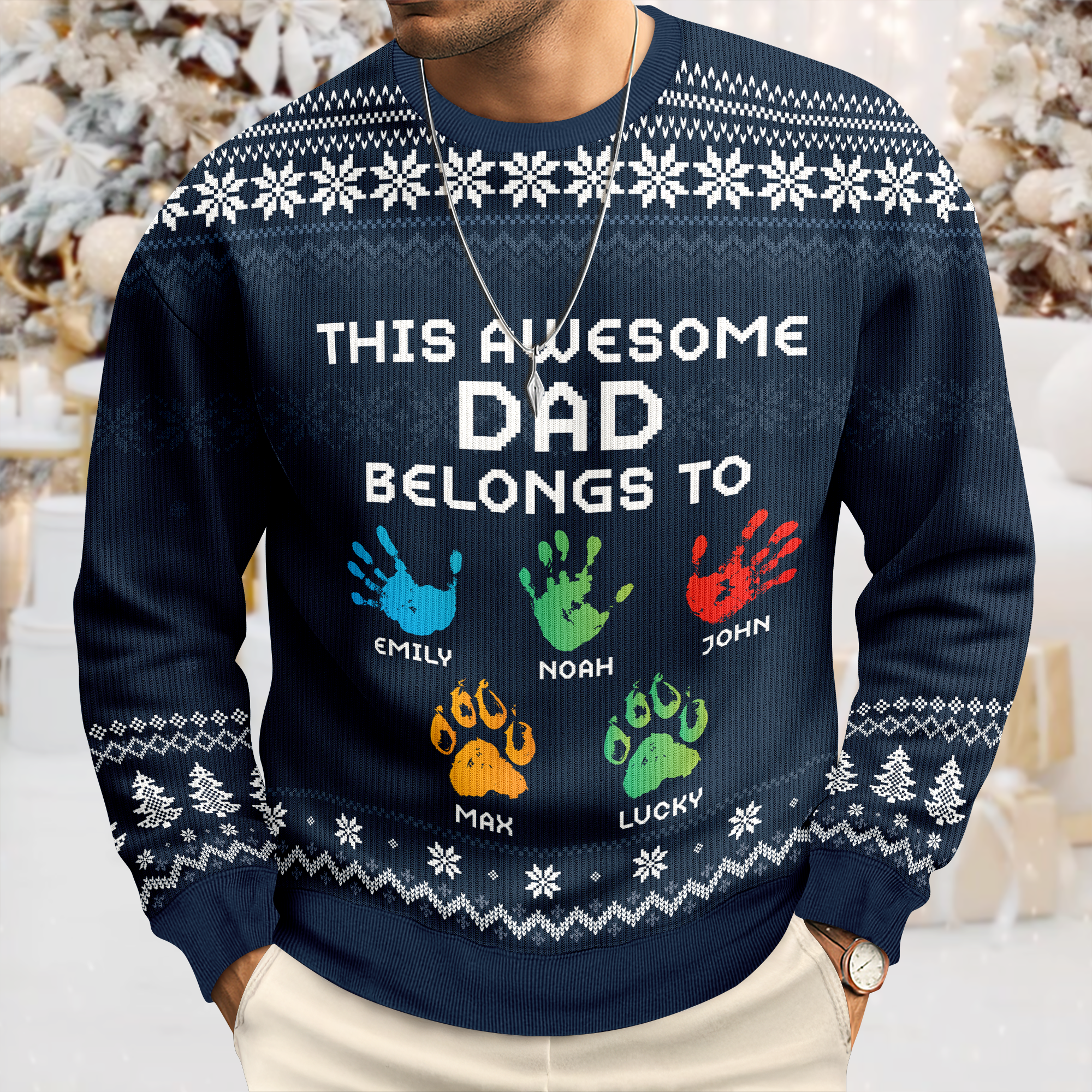 Celebrate the mom who deserves recognition with this hilarious personalized ugly sweater. Perfect for holiday parties, family gatherings, or just making her laugh, this custom design lets you add her name or a special message to create a one-of-a-kind keepsake. The bold, eye-catching pattern and playful "This Awesome Mom Belongs To" message make it an instant conversation starter. Comfortable and fun, it's the gift that says you appreciate her sense of humor. Whether she's into festive fashion or loves a good laugh, this personalized sweater delivers personality and warmth in equal measure.