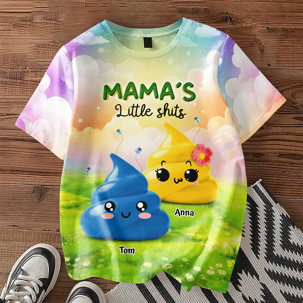 Bring a smile to Grandma's face with our personalized 3D shirt! This funny gift will remind her of her little sh*ts every time she wears it. Perfect for Mother's Day or just because!