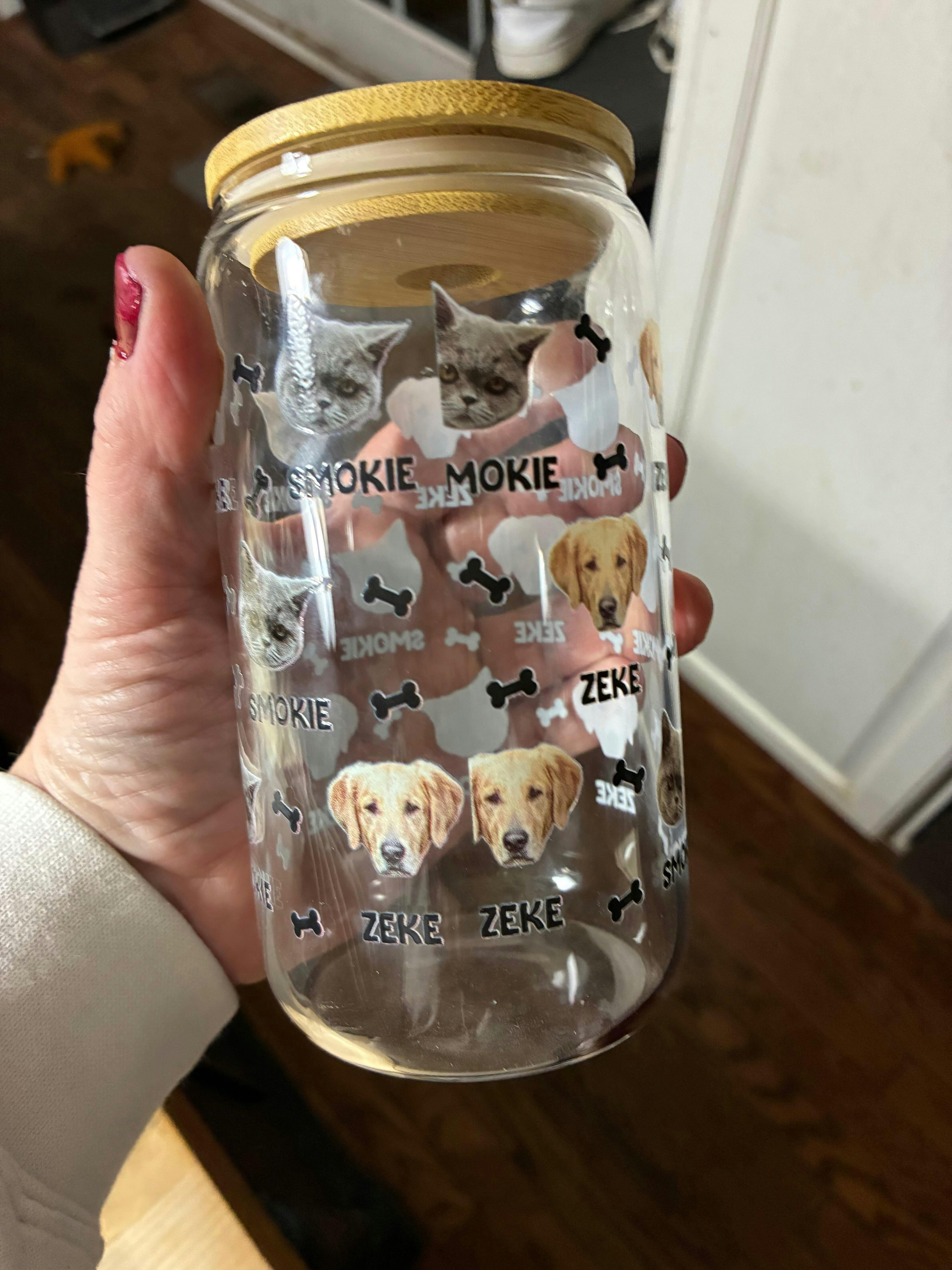 Custom Dog Cat Photo With Bone Icon For Pet Lover Glass Can With Lid TH10 892623