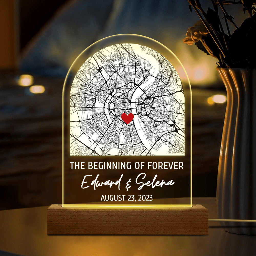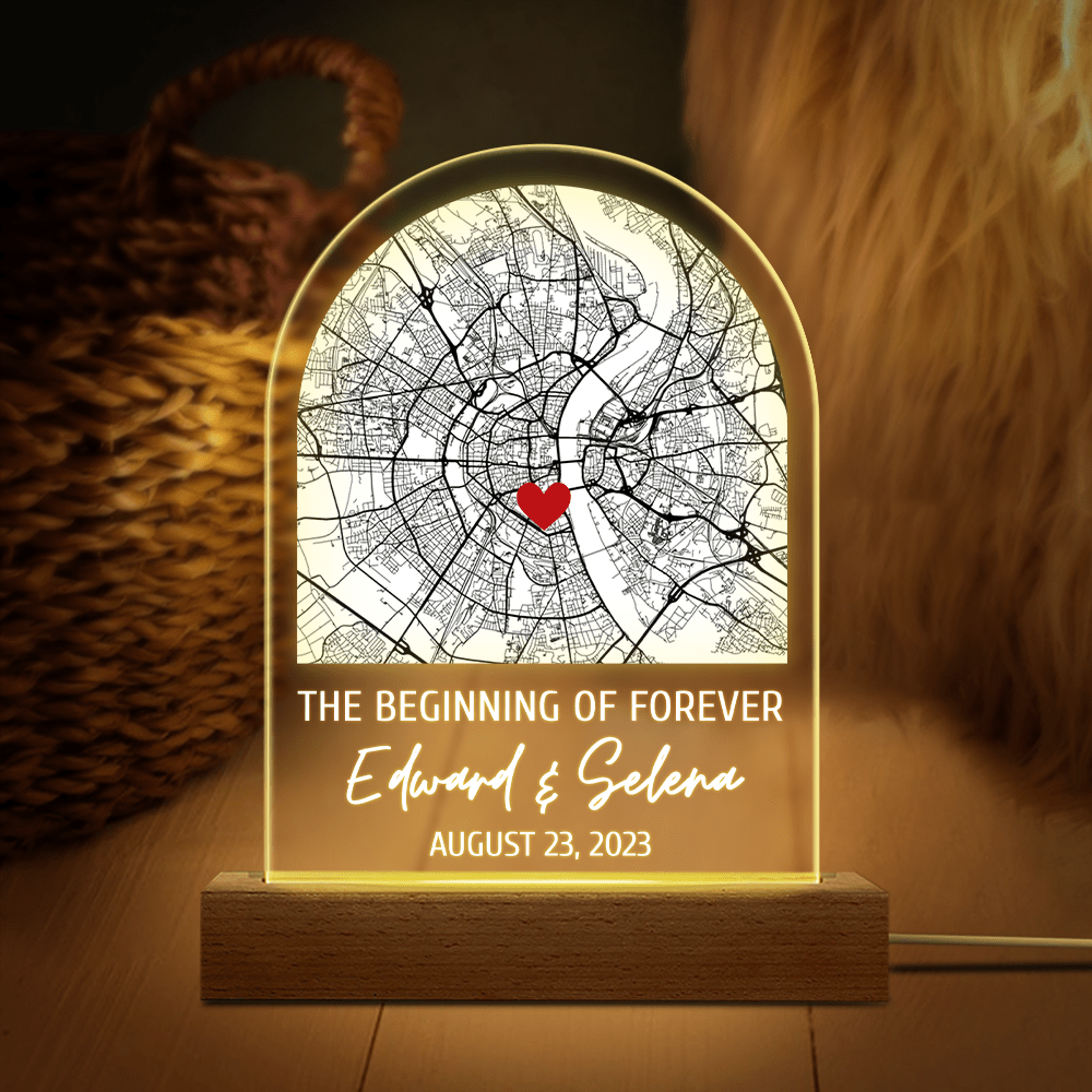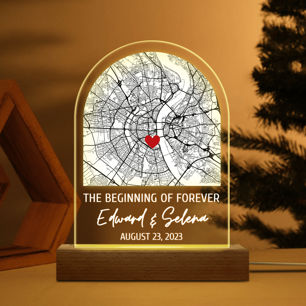 Custom Map Where It All Began Couple Acrylic Plaque LED Night Light HO82 893356