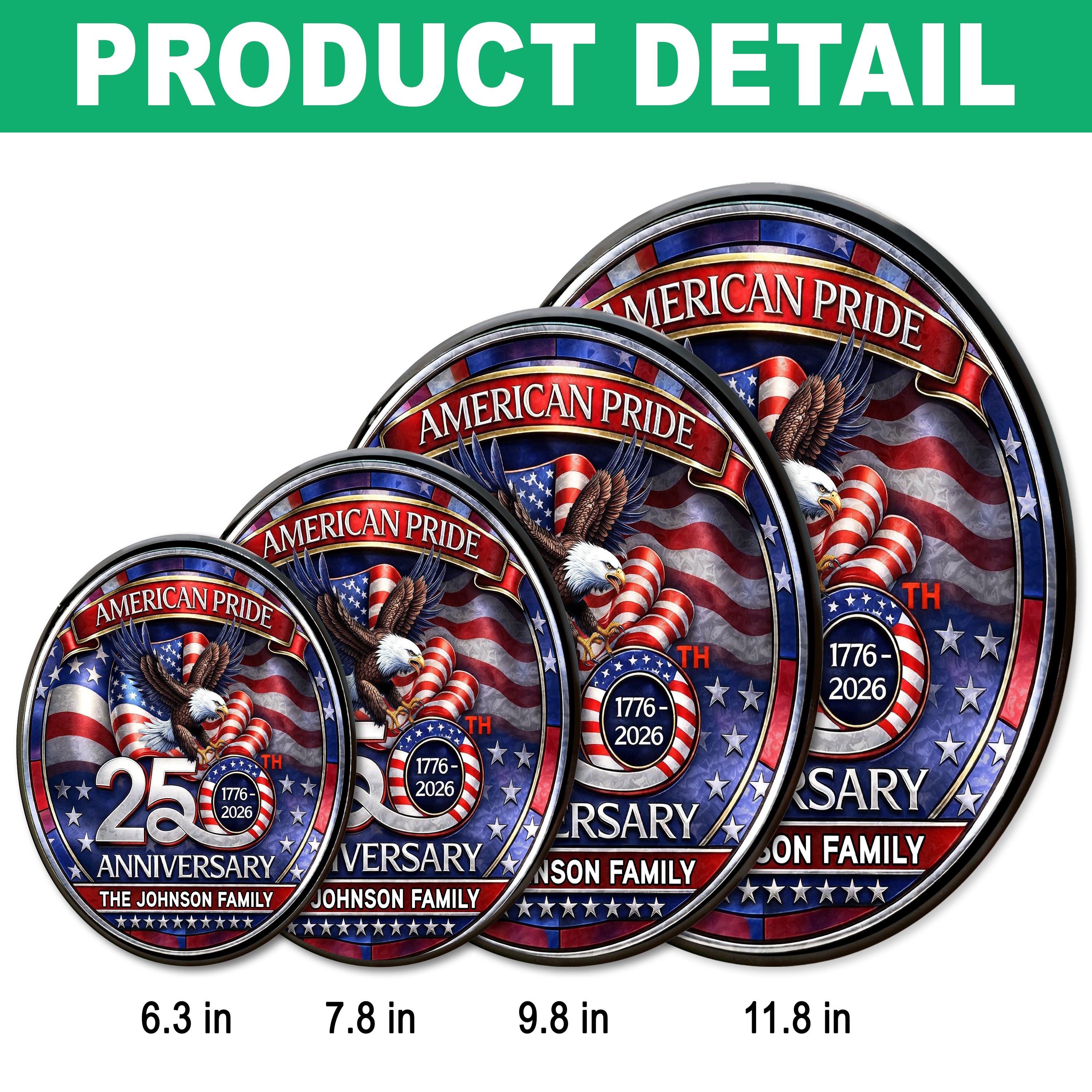 Custom Family Name American Pride Patriotic 250th Anniversary Eagle 1776–2026 Stained Glass Suncatcher HO82 901486
