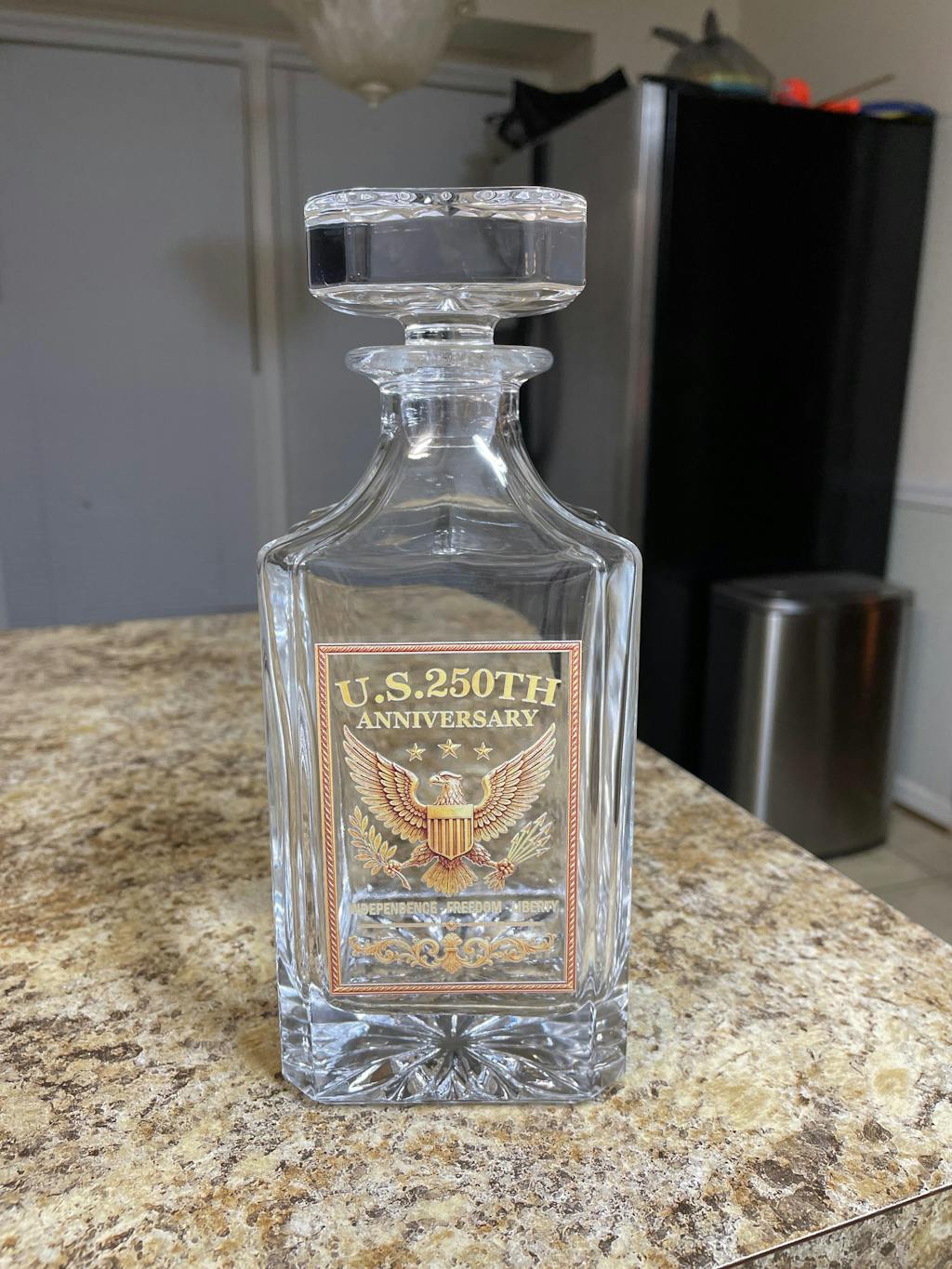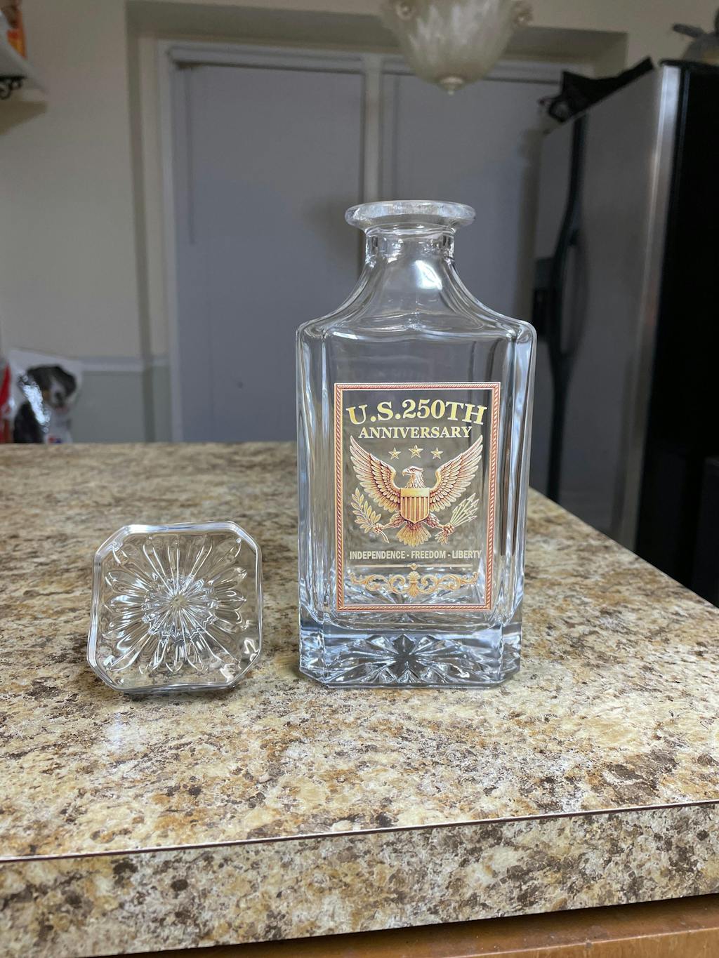 I was so surprised when I received my order when I opened the very tight box I was so surprised how heavy it was and how beautiful it was. I love it. I really can’t express myself on how beautiful and heavy and real glass is I was so pleased. Yes, I would recommend anyone to buy the beautiful whiskey bottle I’m so please that I bought it.