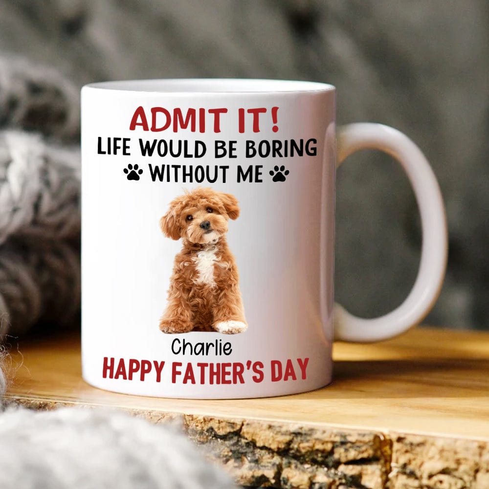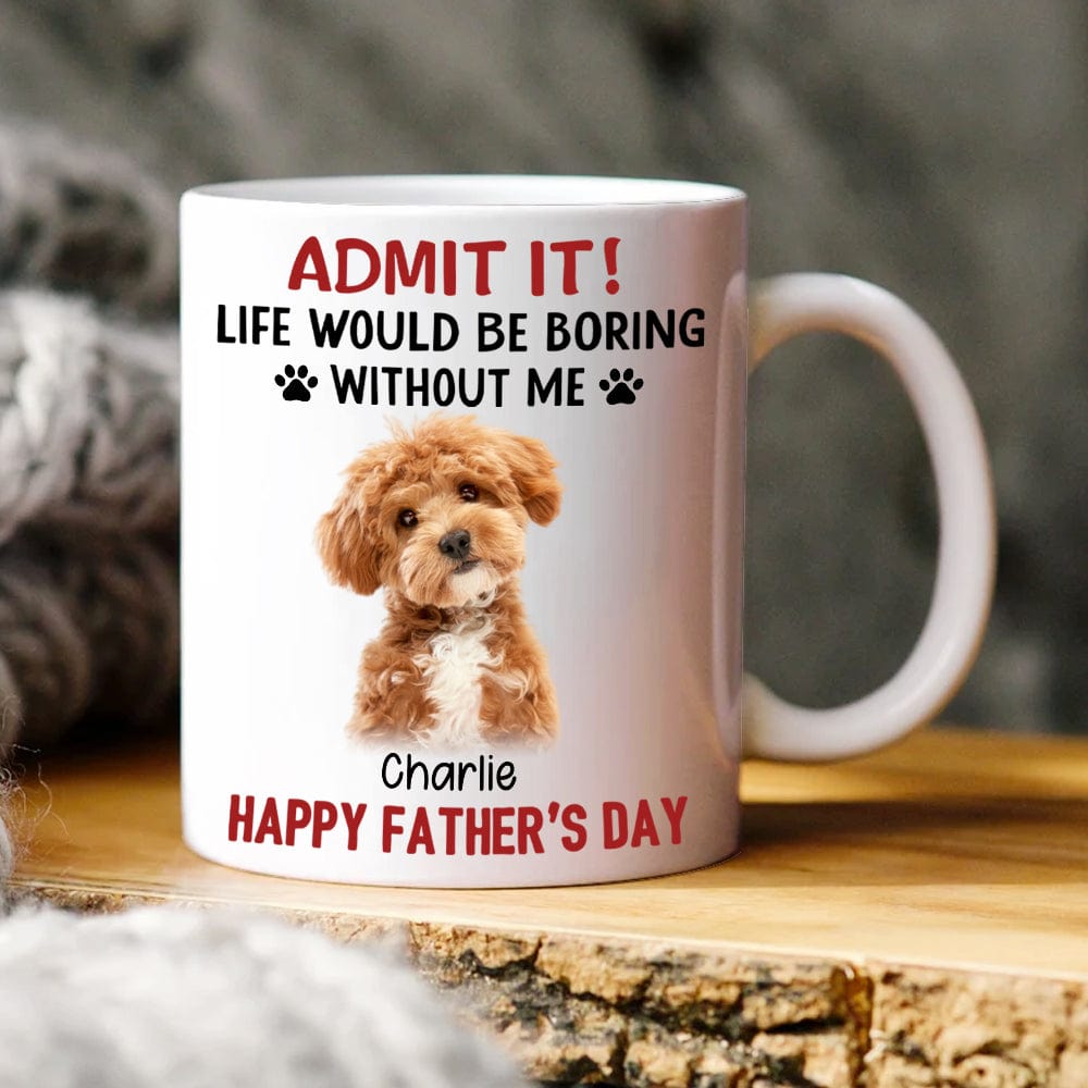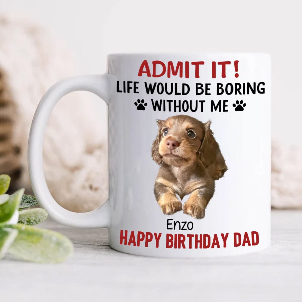 Add some personality to your morning routine with our Custom Upload Pet Photo Dog Mug! This personalized mug features your furry friend's photo, making it the perfect gift for any dog lover. Start your day off with a smile and a reminder that life would be boring without your loyal companion by your side.