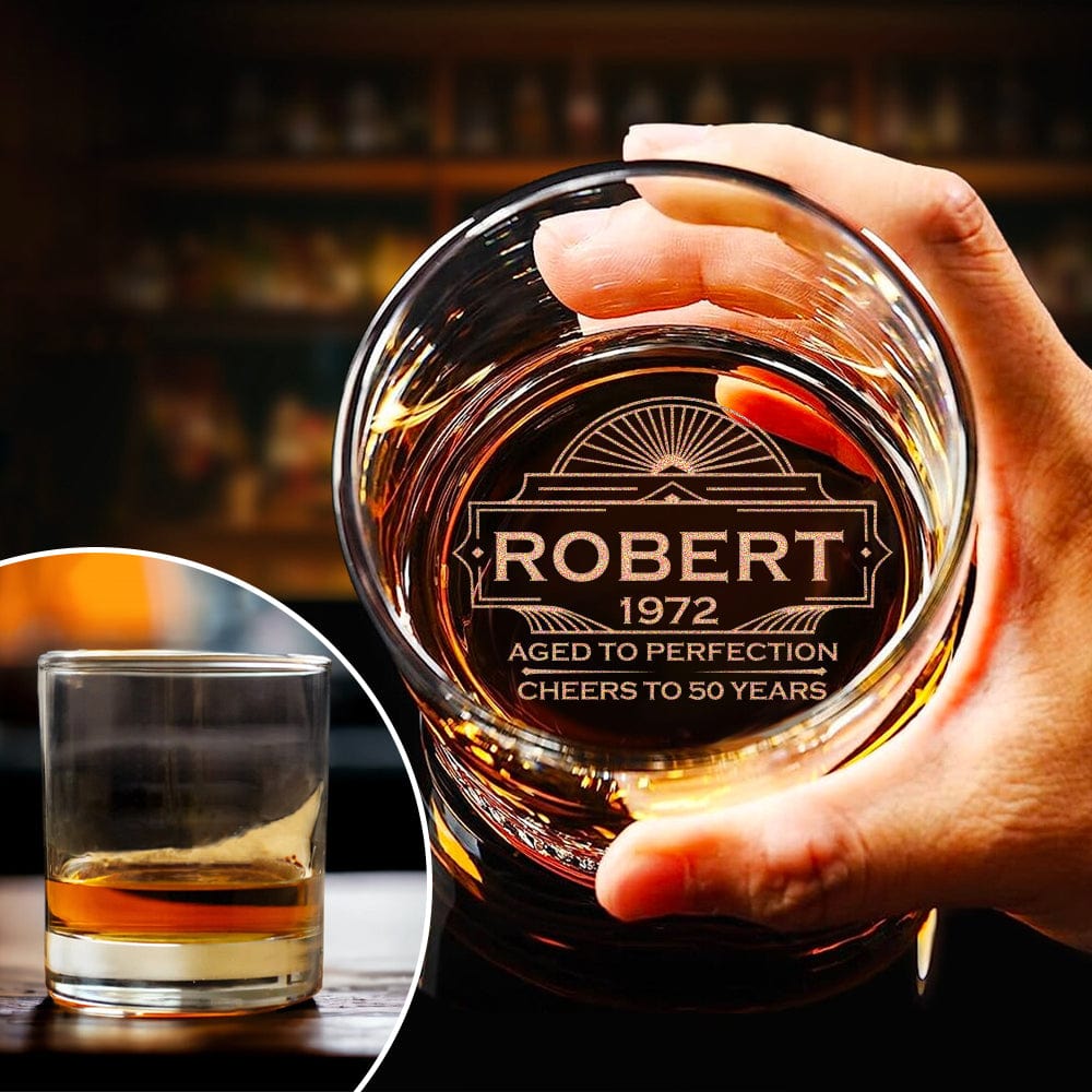 Elevate any drink with our Aged To Perfection Personalized Engraved Rock Glass. Celebrate Father's Day or any special occasion with this exclusive piece. With sleek design and the option to personalize, this premium rock glass is the perfect addition to any man's collection.