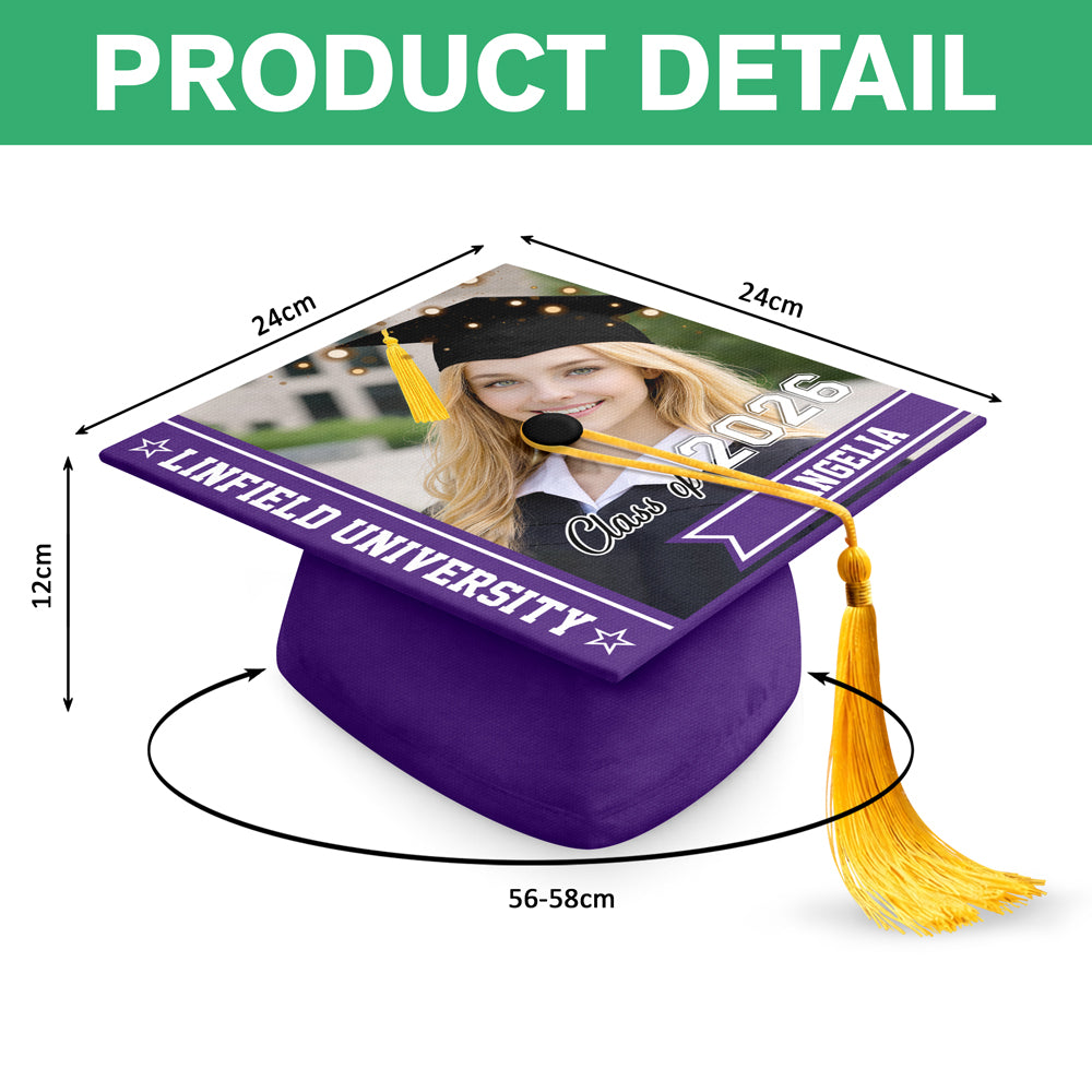 Make graduation day unforgettable with this personalized photo graduation cap topper. Featuring your custom image, name, school, and “Class of 2026,” it adds a bold and meaningful touch to the ceremony. Celebrate your achievement in style and stand out from the crowd!