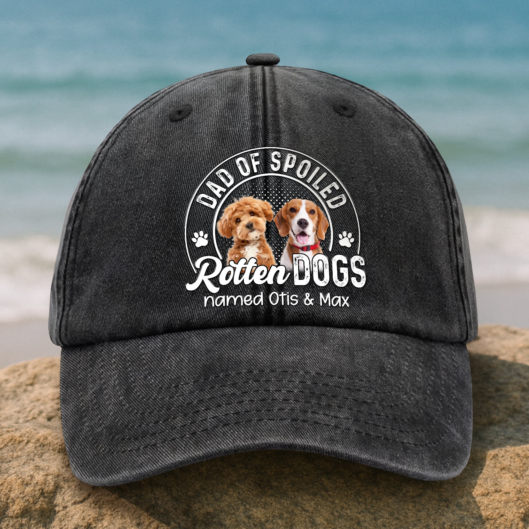 Showcase your special bond with your furry best friend on this personalized denim baseball cap. Perfect for proud dog dads who aren't afraid to admit they've been wrapped around their pup's paw. Upload your favorite photo and wear your "spoiled rotten" status with pride. Comfortable, stylish, and guaranteed to start conversations at the dog park.