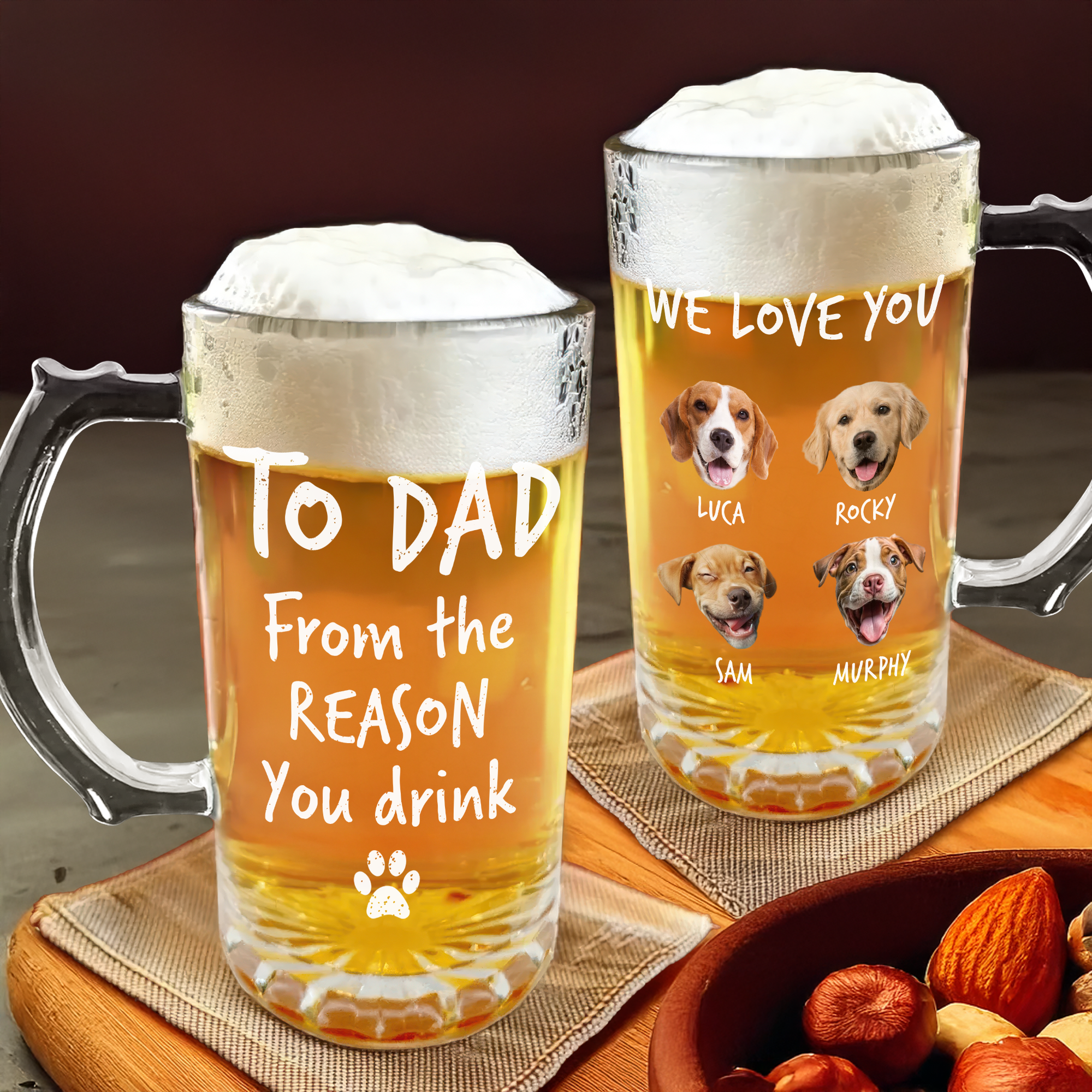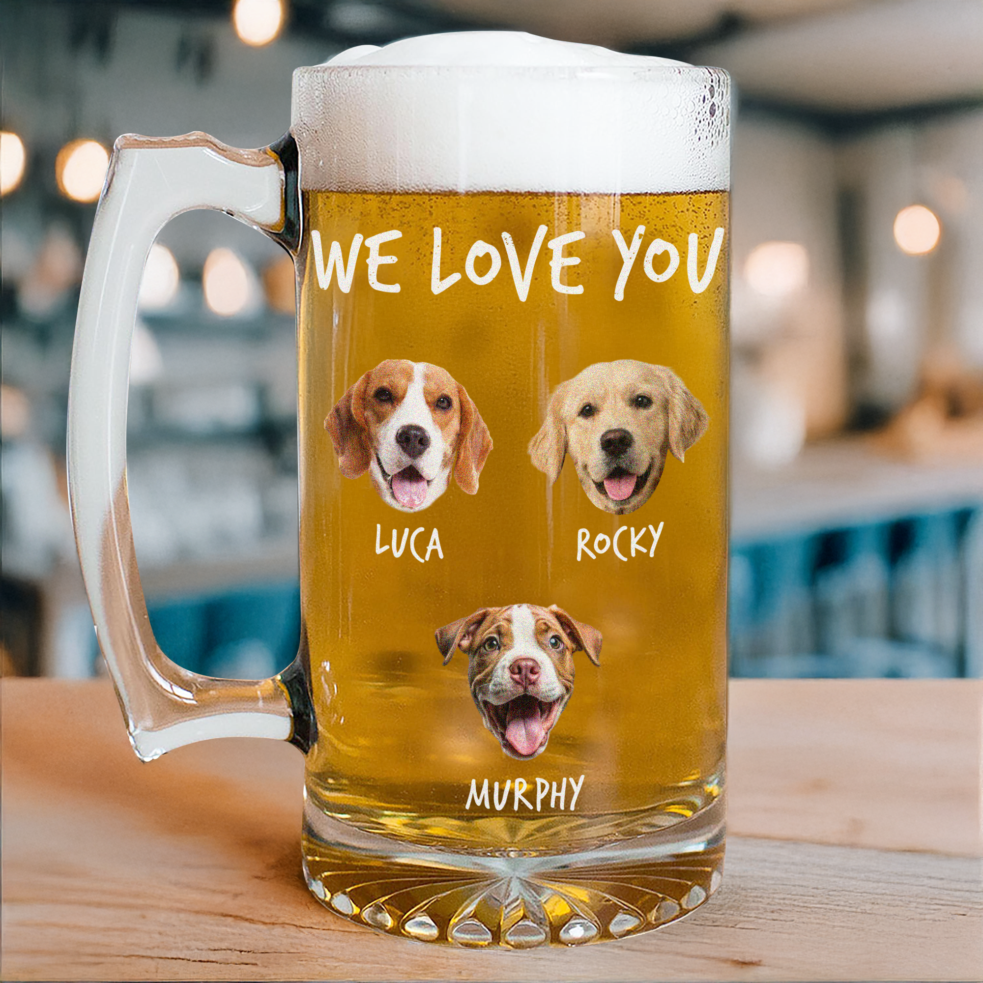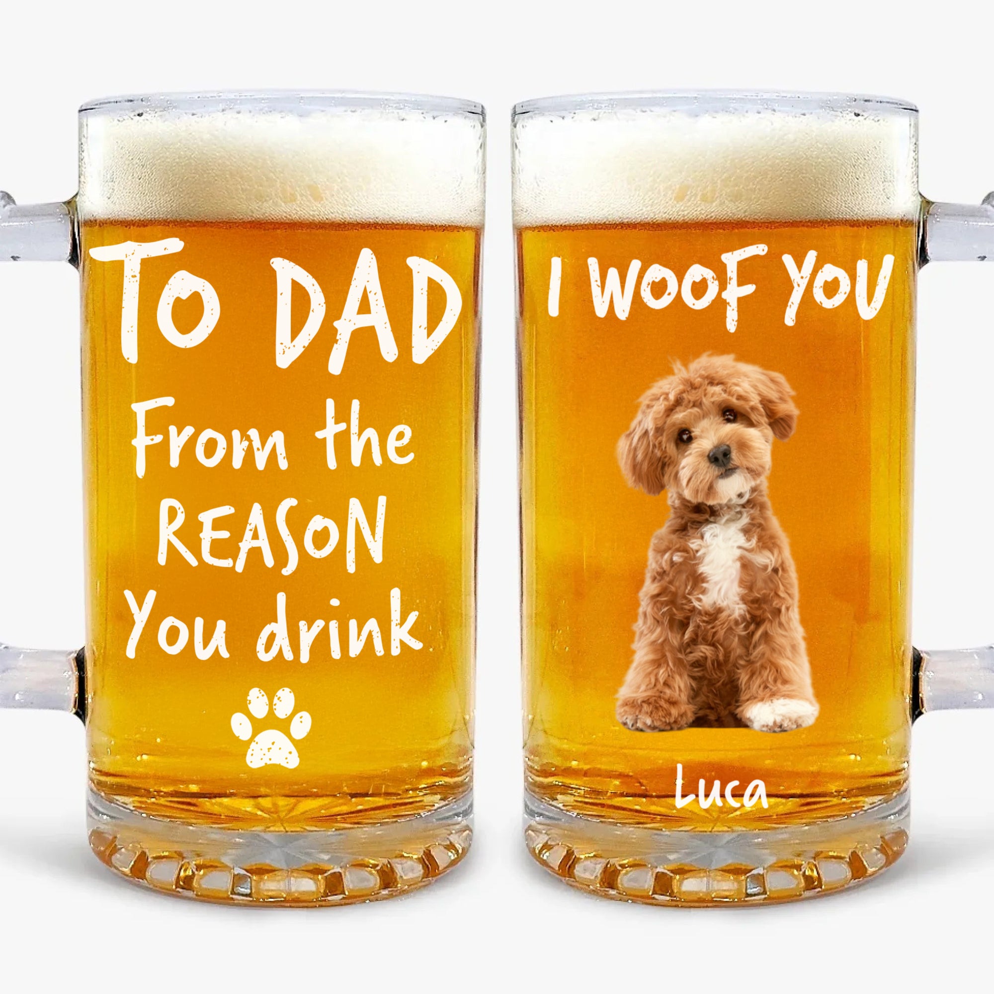 This custom photo beer mug is the perfect gift for any pet lover. Show off your furry friend with a personalized design that will make every drink more enjoyable. Life would definitely be boring without them, so let's cheers to our furry companions!