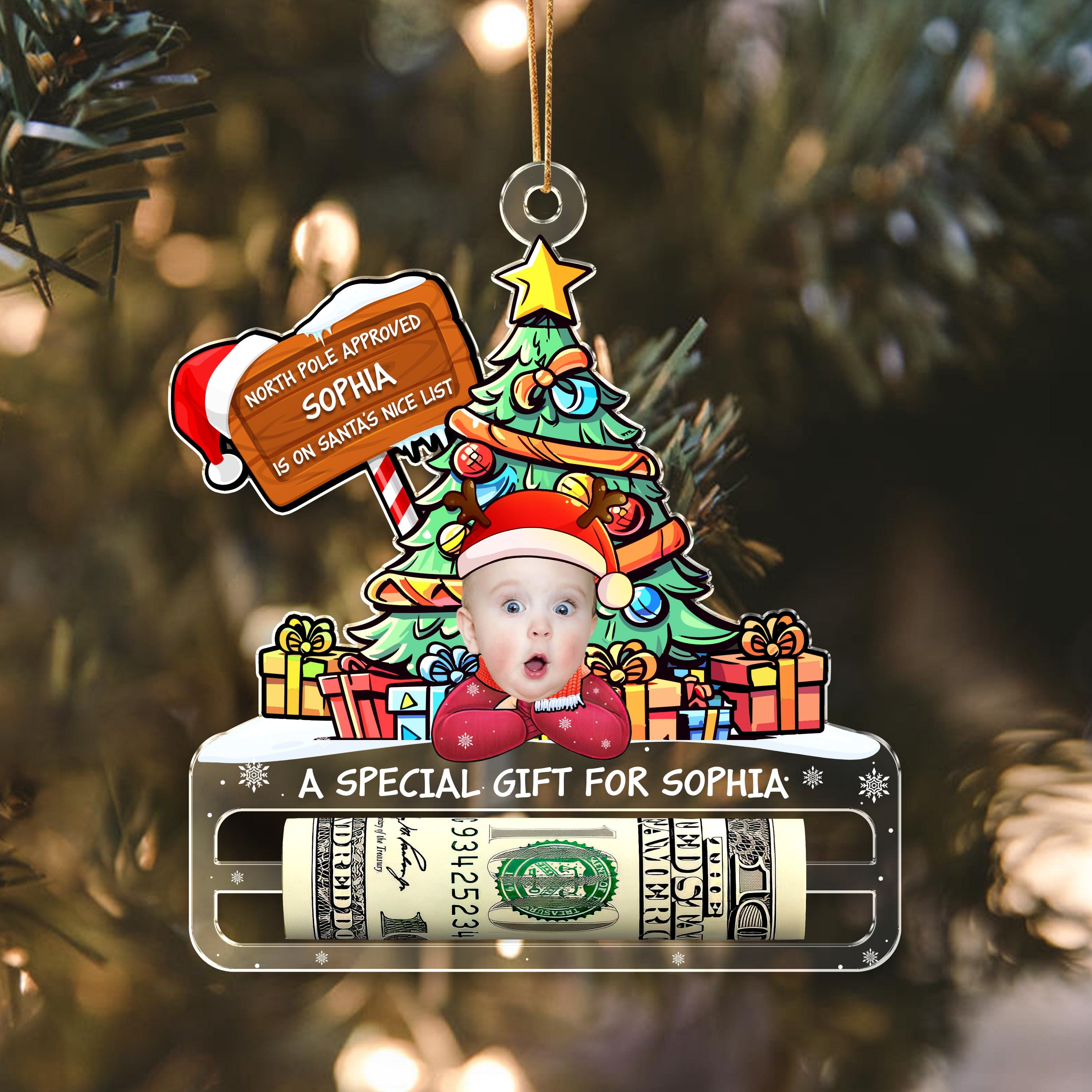 Keep the magic of Christmas alive with our Custom Photo Nice List Santa Christmas Money Holder Ornament! Perfect for kids, this ornament is a unique and thoughtful gift that will bring joy and excitement this holiday season. Add a personal touch with a special photo and make it a cherished keepsake for years to come. Order now and spread the holiday spirit!