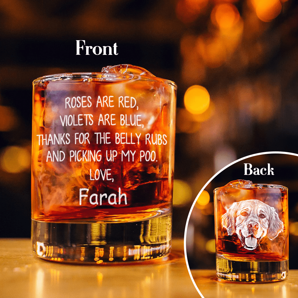 Indulge in a unique and elegant experience with our Custom Photo Roses are Red Violets Are Blue Dog Rock Glass. This rock glass is perfect for the sophisticated dog lover, featuring a stunning design that will elevate your drinking experience. Savor every sip while showcasing your love for man's best friend.