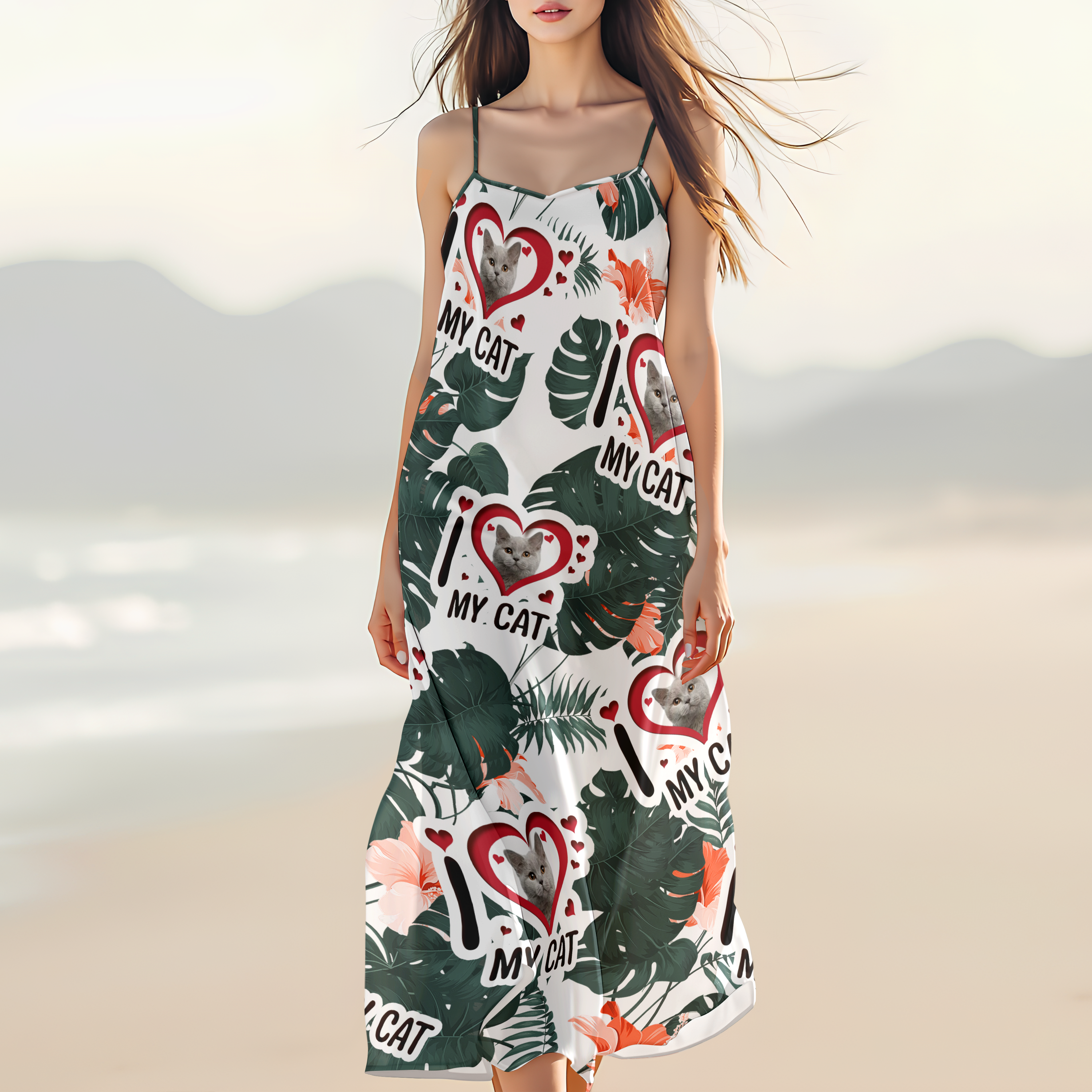Indulge in the ultimate expression of love for your furry friend with our Custom Cute Pet Photo I Love My Dog Cat Hawaii Maxi Dress! Show off your passion for pets with this adorable dress that is perfect for fellow pet lovers. Add a personal touch by including a photo of your beloved pet. This dress is a must-have for anyone who adores their furry companions.
