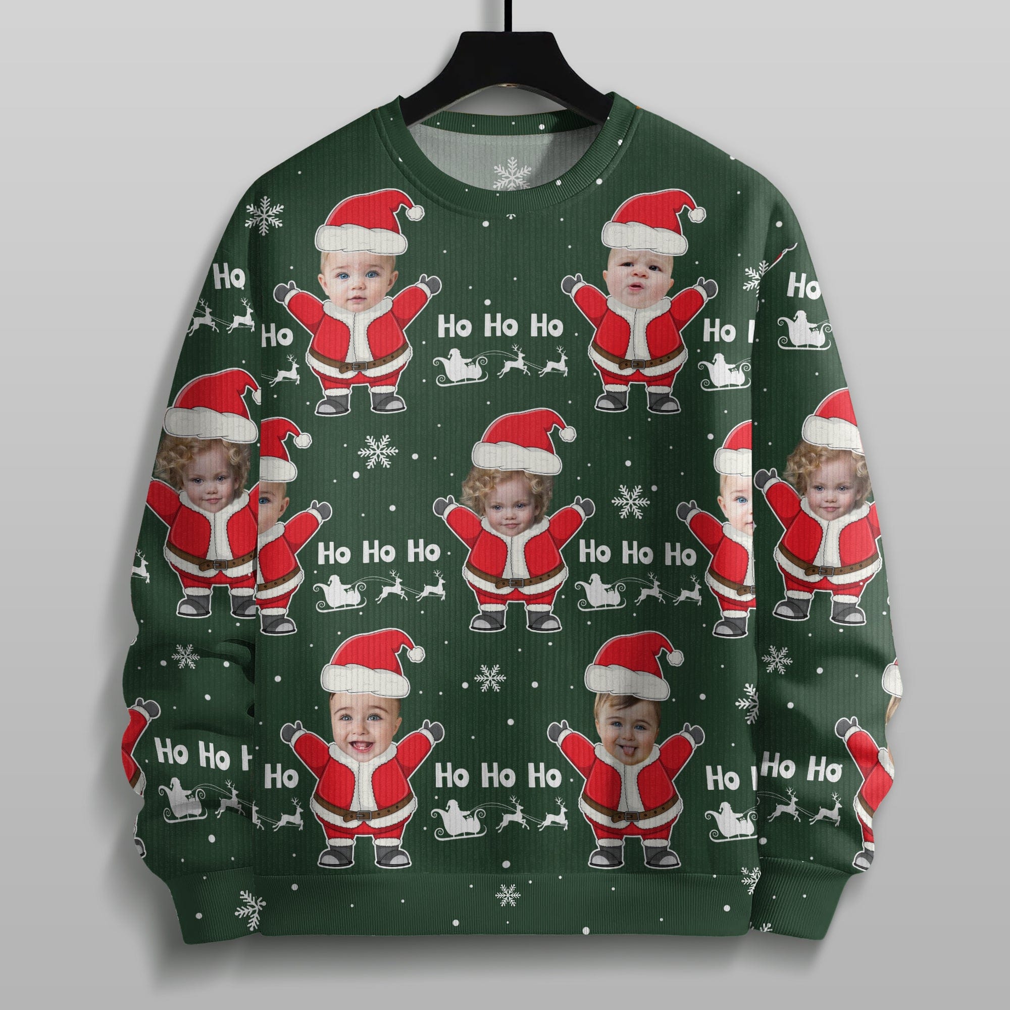 Don't wait for Santa to bring the perfect holiday gift, make it yourself with our Custom Face Ho Ho Ho Xmas Santa All-Over-Print Ugly Sweater! Personalize this cozy sweatshirt for your family or loved one. Spread joy and laughter with this unique and thoughtful present.