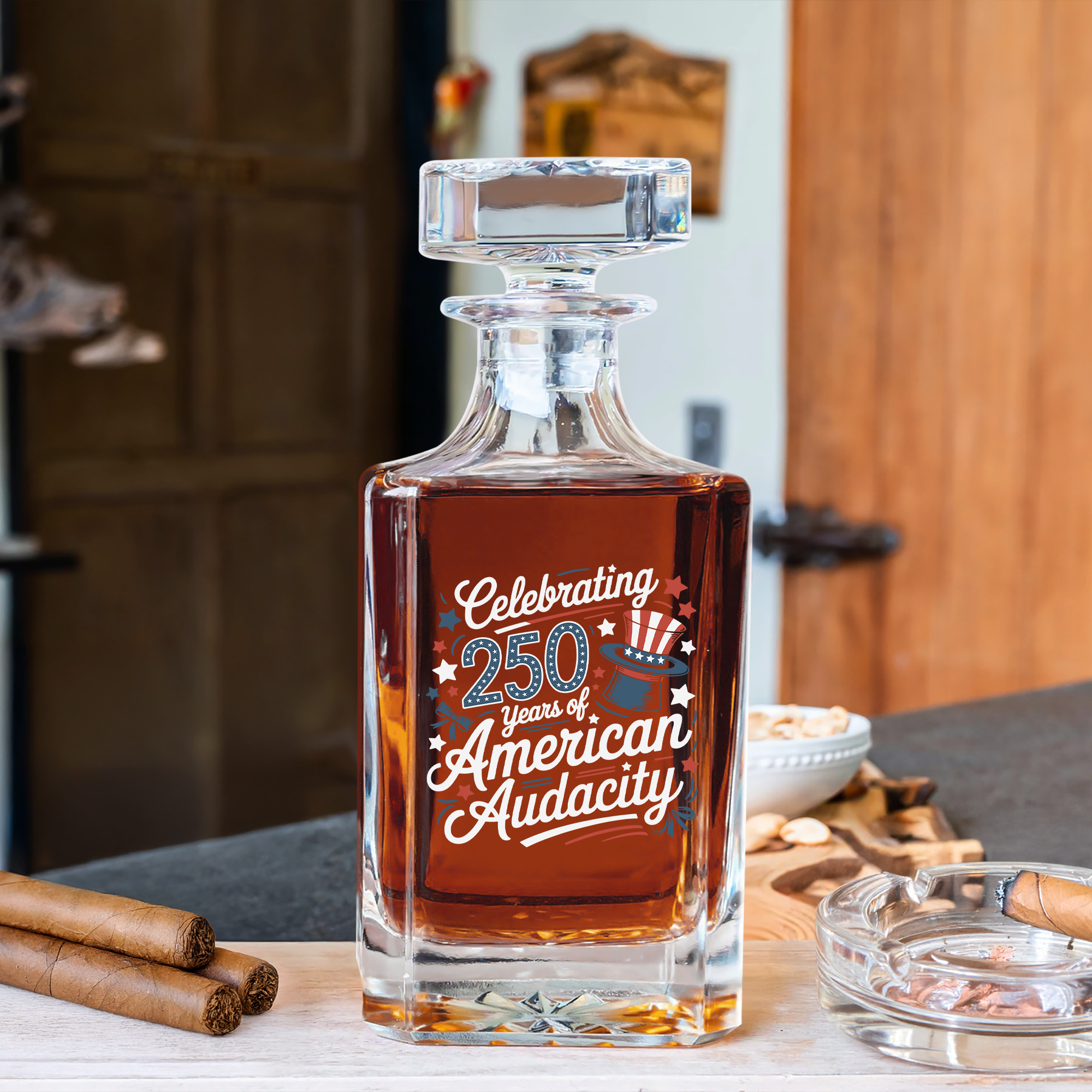 Commemorate a remarkable milestone with the Celebrate 250 Years of America USA Anniversary Decanter. Crafted to honor the nation's rich history from 1776 to 2026, this elegant decanter makes a distinguished gift that embodies patriotism and pride. Perfect for collectors and history enthusiasts, it adds a timeless touch to any celebration or display. Mark this historic anniversary with a keepsake that will be cherished for generations.