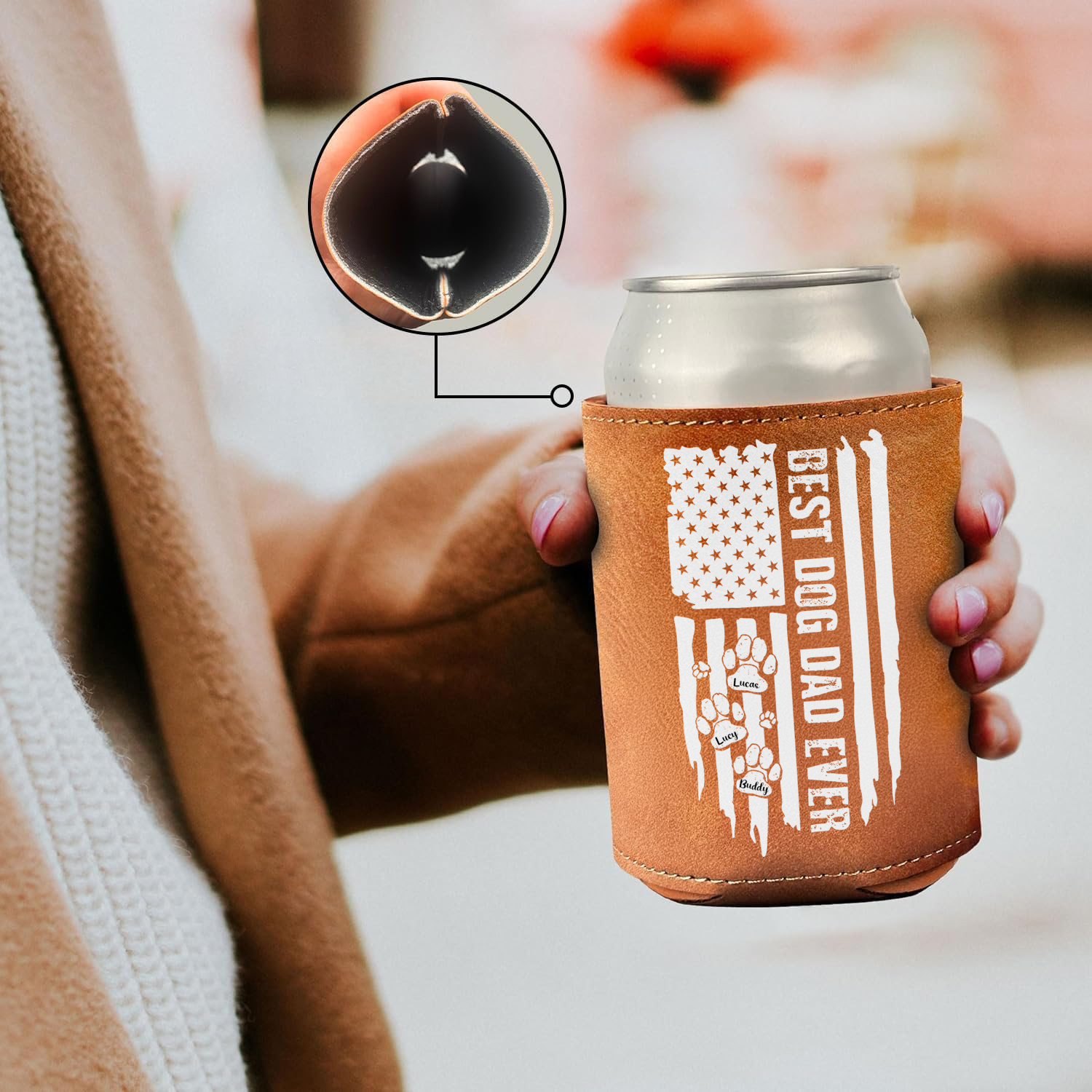 Best Dog Dad Ever Paw American Flag Leather Can Cooler Holder Gift For Dog Lovers HO82 894106
