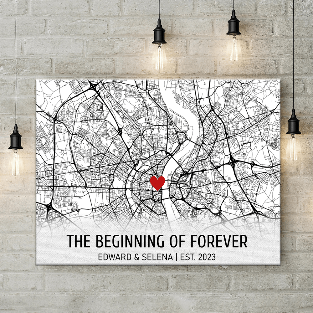 Celebrate your love story with our Custom Map Where It All Began Couple Poster! This unique gift for couples displays the special place where your journey together started, adding a personal touch to any home. Perfect for Valentine's Day or a wedding anniversary, this canvas picture frame is a romantic and thoughtful gift that will be cherished for years to come.