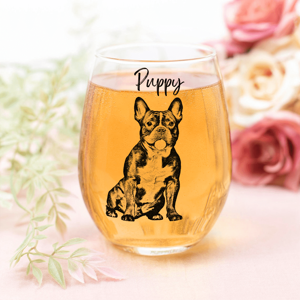 This custom stemless wine glass is the perfect gift for dog and cat lovers! Show your love for your furry friends with this unique and thoughtful present. Enjoy your favorite wine in style while honoring your beloved pets. Cheers to the special bond between humans and their four-legged companions!