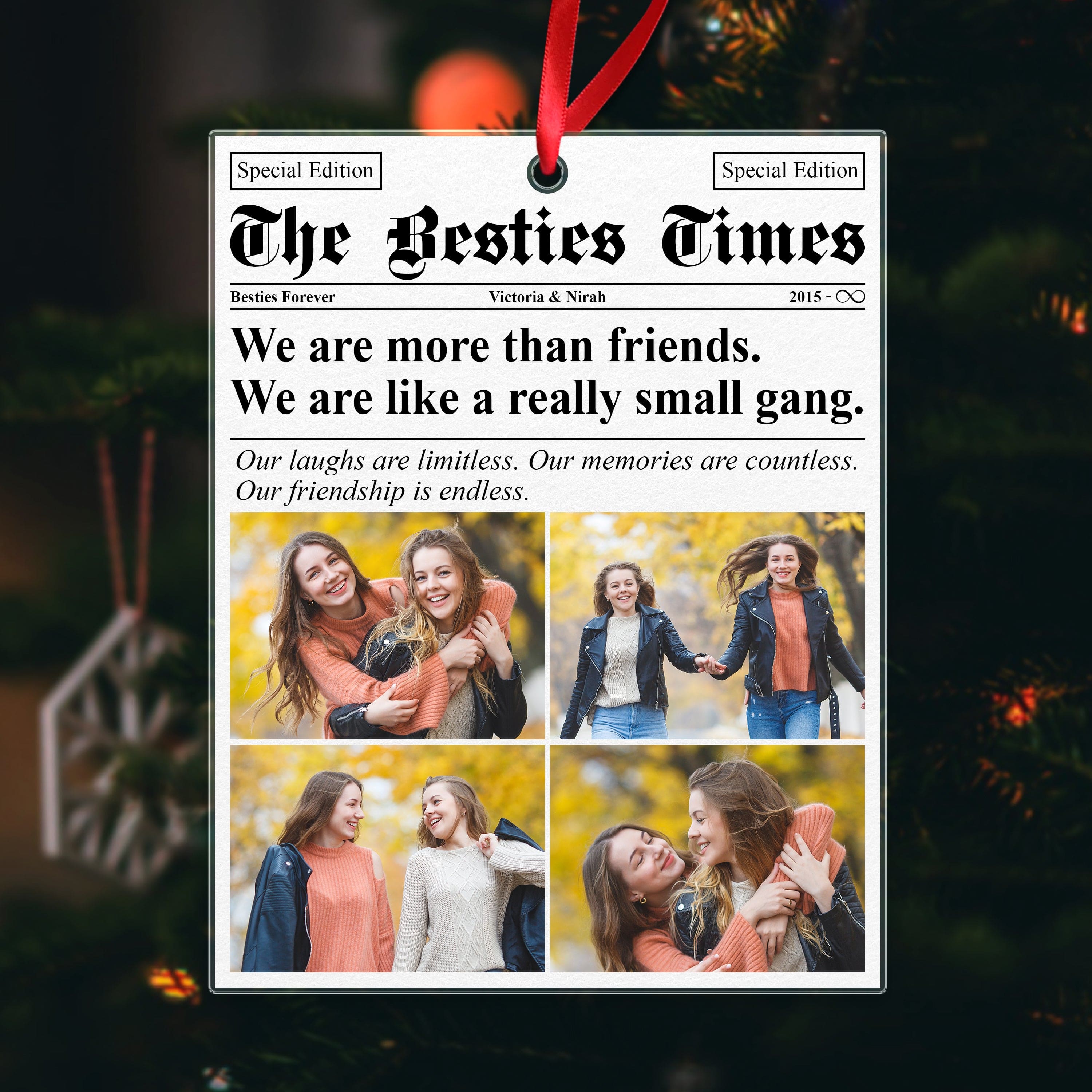 Surprise your best friend with a heartfelt gift they'll cherish forever! Our Custom Photo Friendship Ornament is the perfect way to celebrate your friendship. Personalize it with a photo and create a unique Christmas ornament that symbolizes your special bond. Show your bestie how much they mean to you with this beautiful acrylic ornament.