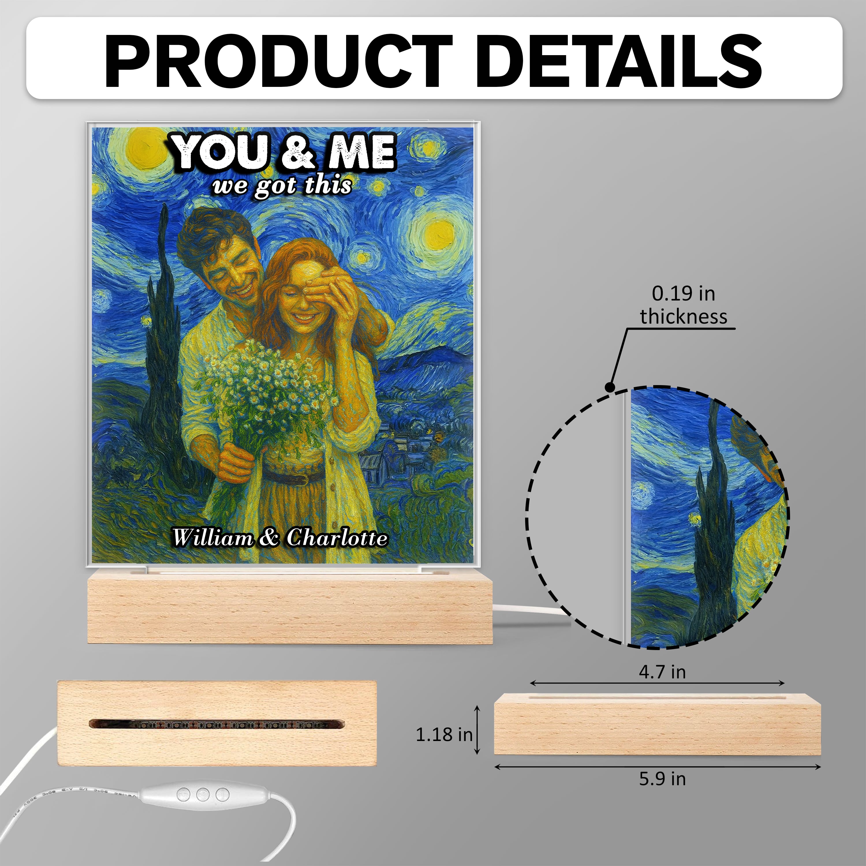 Illuminate your special moments with this Custom Photo "You And Me We Got This Under Starry Night" Personalized LED Night Light. Perfect as a heartfelt gift, it transforms your cherished photo into a glowing keepsake that brightens any room. Its warm LED light creates a cozy ambiance, reminding your loved one of your unbreakable bond every night. Ideal for anniversaries, birthdays, or just because, this unique night light combines personalization with meaningful sentiment to make your gift truly unforgettable.