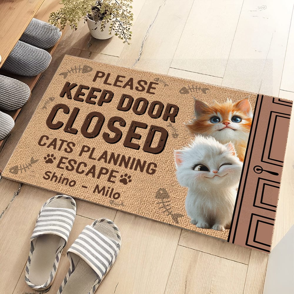 This personalized doormat is a must-have for any cat lover! With a humorous "Keep Door Closed Cats Planning Escape" design, it adds a touch of fun to your home decor. Perfect as a gift for yourself or a fellow cat enthusiast.