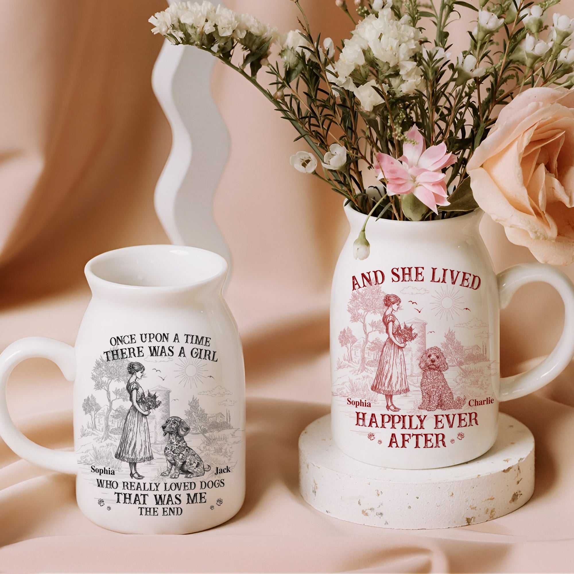 Elevate your home decor with the And She Lived Happily Ever After Dog Toile De Jouy Personalized Vase. This charming vase features a classic Toile De Jouy pattern adorned with delightful dog motifs, adding a touch of whimsy and elegance to any room. Personalize it to create a unique statement piece that reflects your style and love for dogs. Perfect for displaying fresh flowers or as a standalone decorative accent, this vase brings warmth and personality to your living space. Make every moment feel happily ever after with this exquisite, personalized treasure.