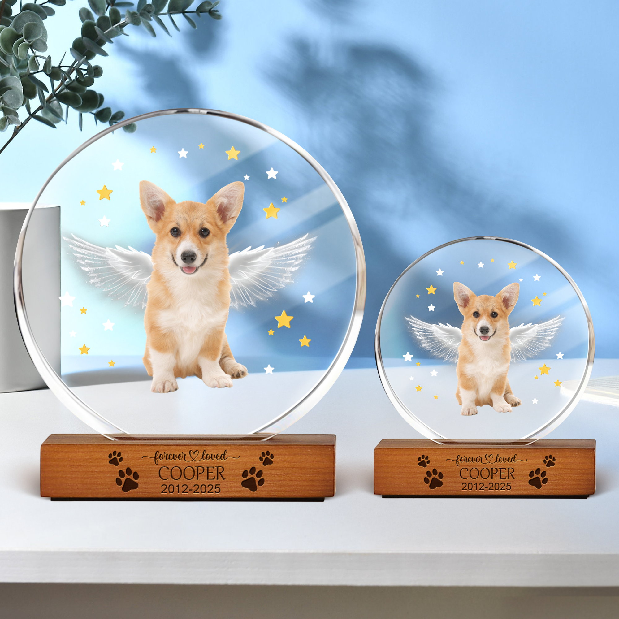 Honor the memory of your beloved dog with this Custom Dog Photo Memorial Round Acrylic Frame Block. Crafted from clear acrylic, it beautifully showcases your pet’s photo in a sleek, modern round design. This lasting tribute keeps your furry friend close, making it a heartfelt gift or a cherished keepsake for your home. Durable and elegant, it’s a meaningful way to celebrate the special bond you shared.
