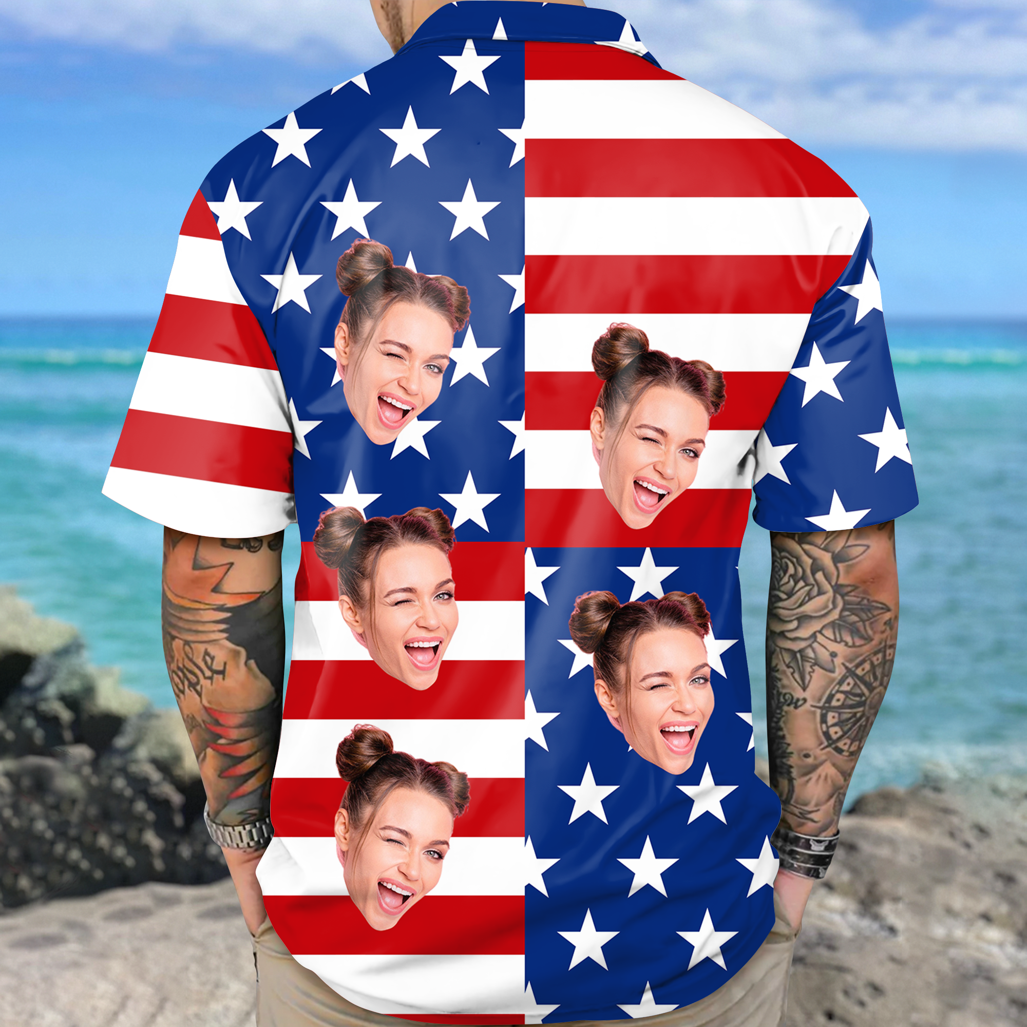 Custom Face American Flag Hawaiian Shirt Personalized Funny Independence Day Gift CH07 896108